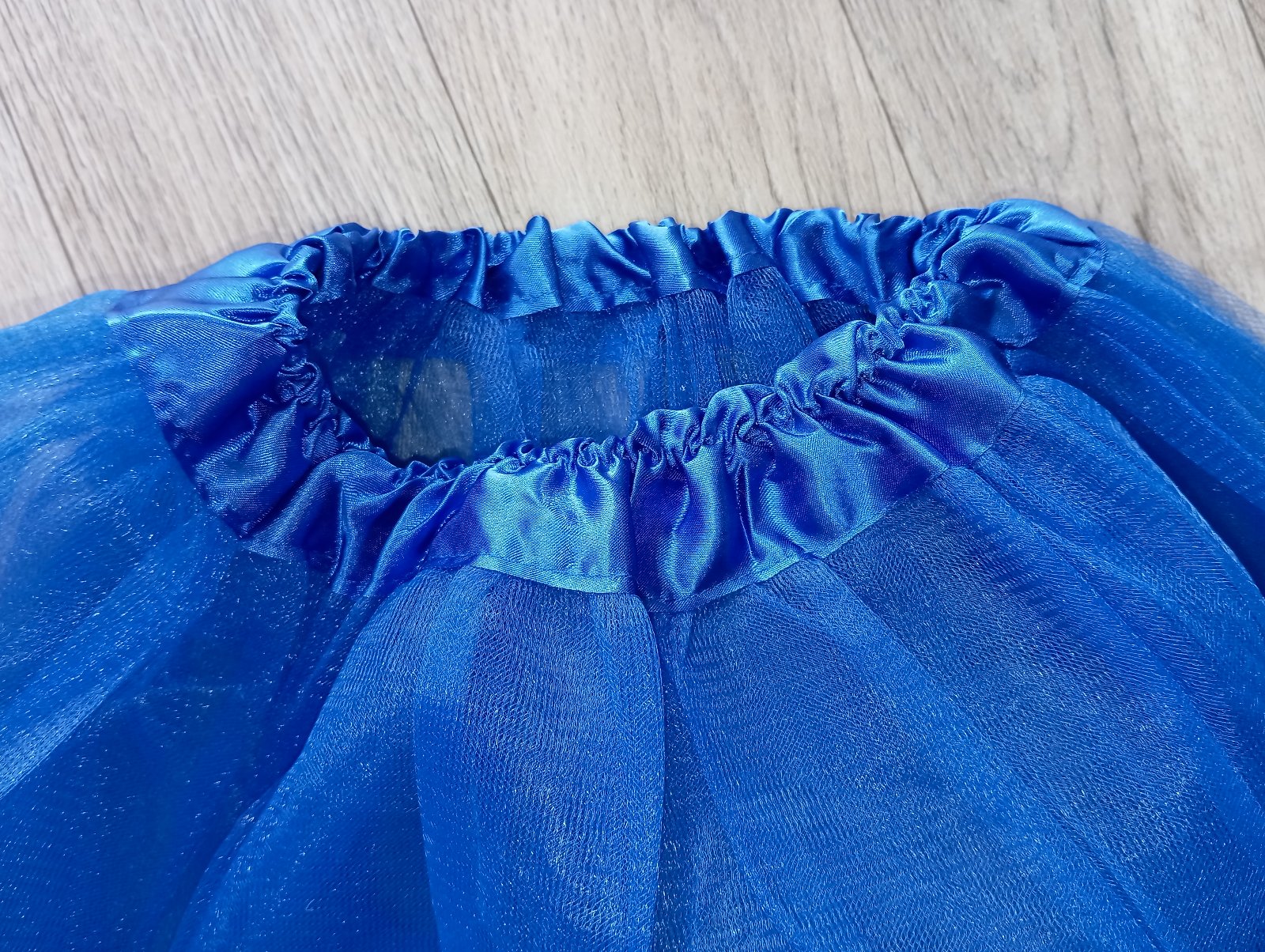 Sukňa má dve vrstvy tylovej látky na lesklej stužke, v ktorej je všitá guma na páse.