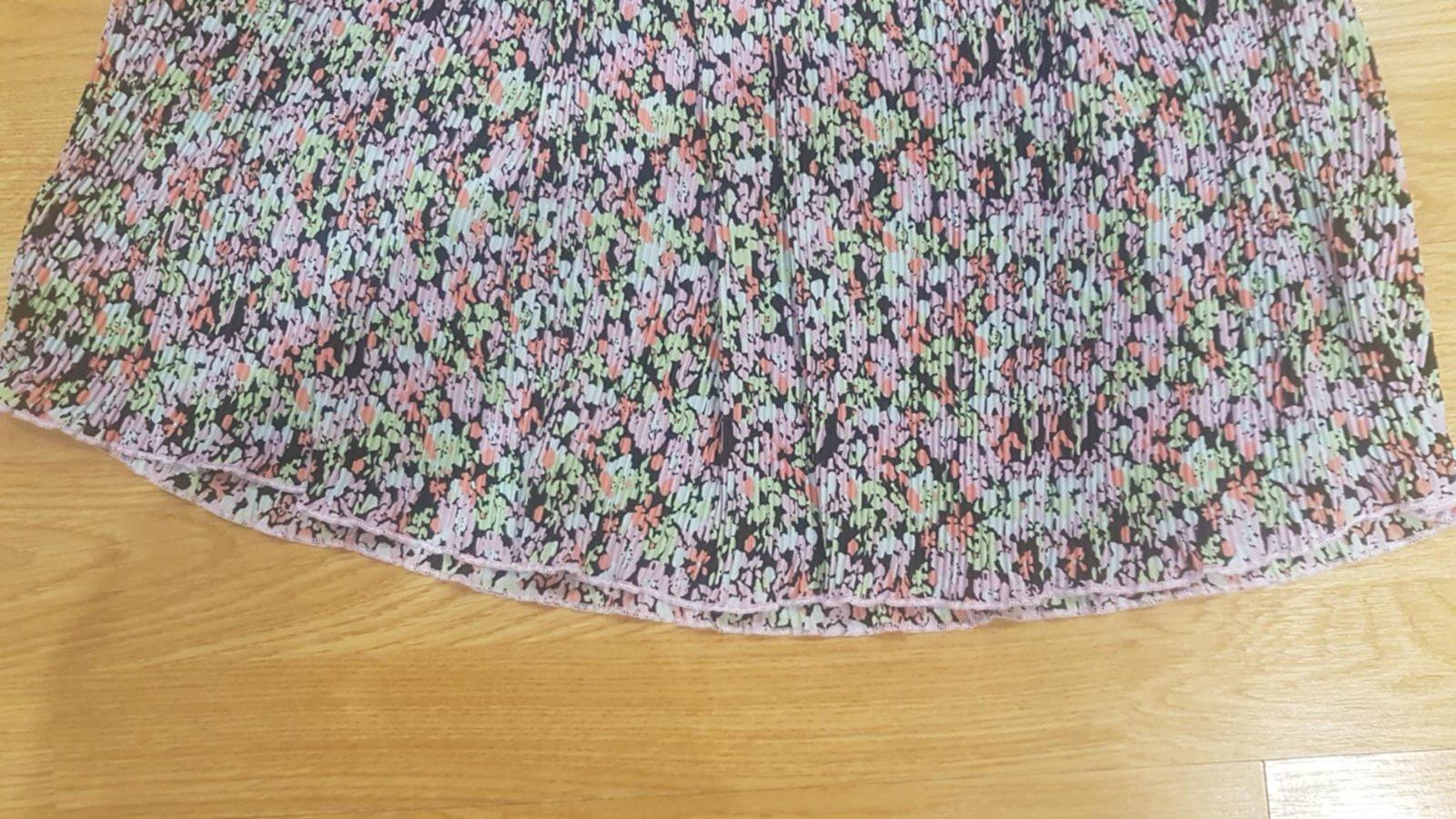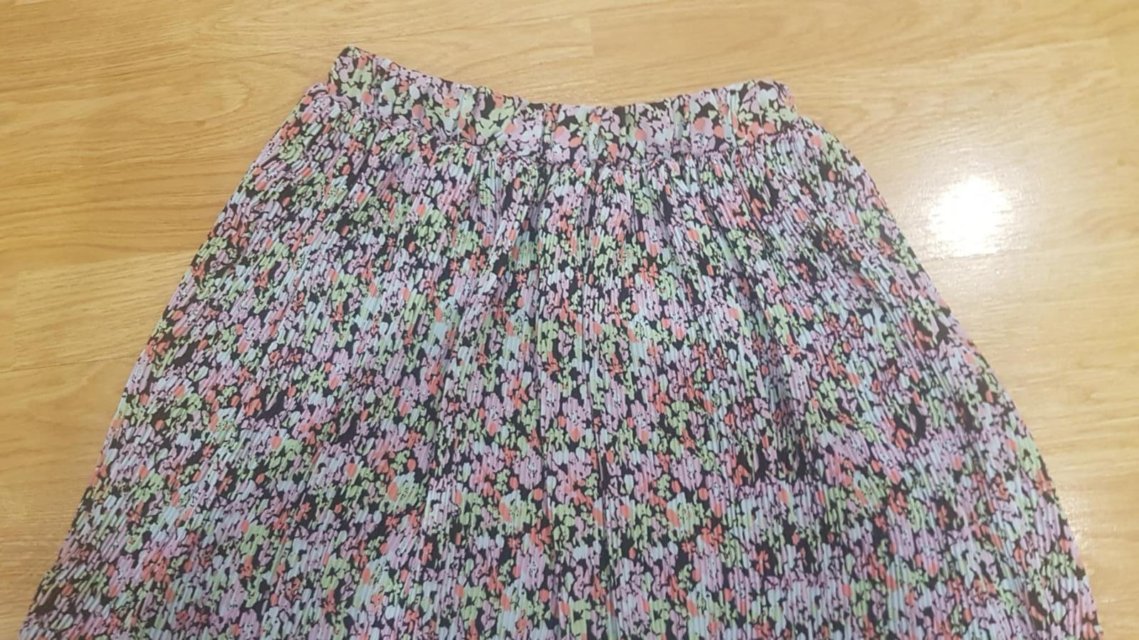 Suknička je ako nová, absolútne žiadne známky nosenia. Je plisovaná, v páse guma, pás šírka v kľude je 30 x 2 cm, natiahne sa do 44 x 2 cm. Celková dĺžka je 44 cm. Farby sú výraznejšie, nie také tlmené ako na foto, nejde mi to lepšie odfotiť.