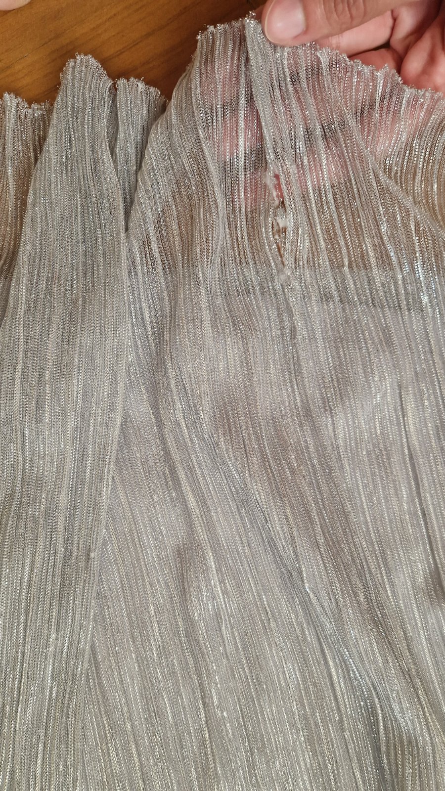 Na spodnom leme ma mensie natrhnutie - tym ze je 'bohatsia' nie je to pri noseni vidiet