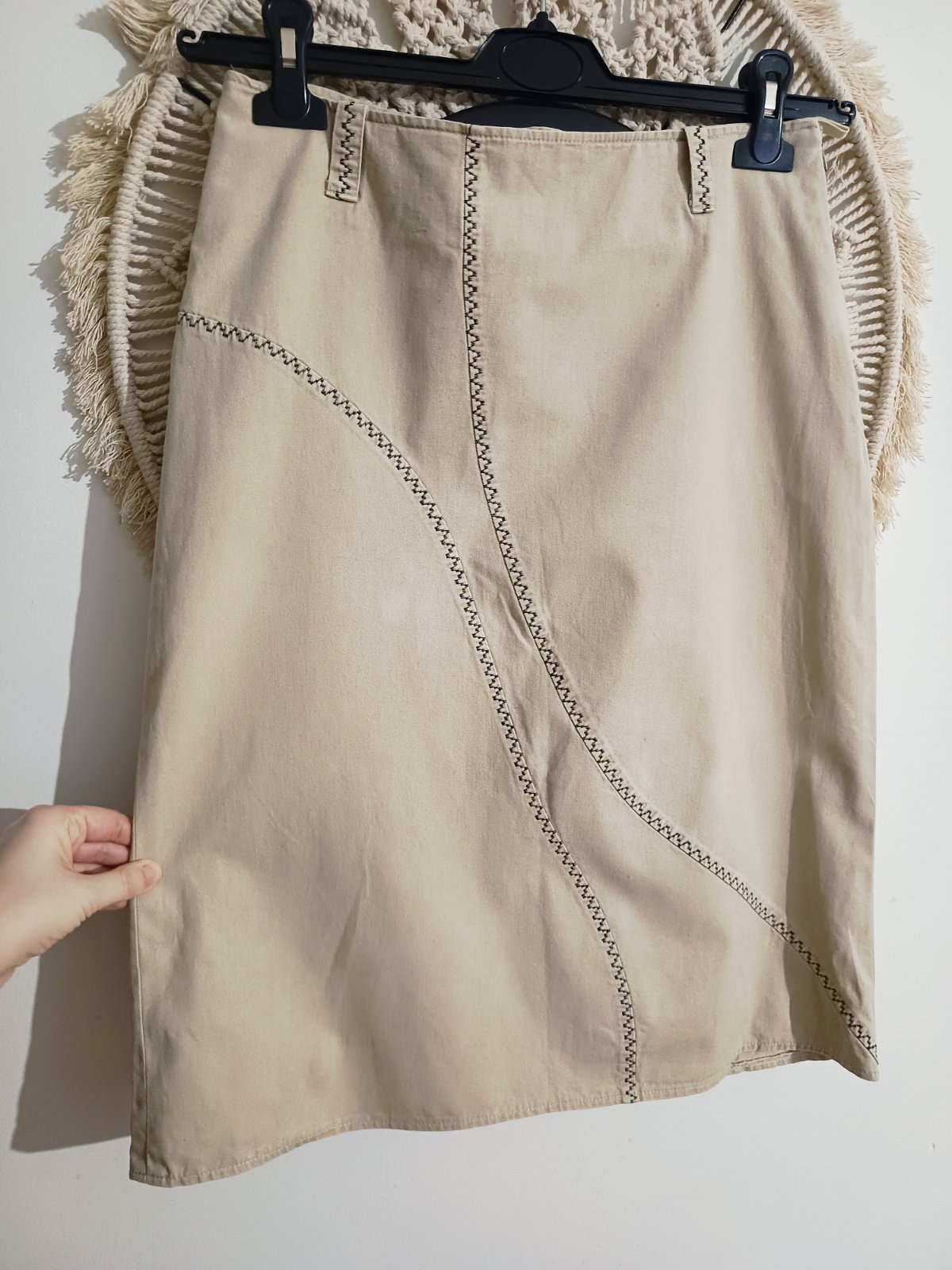 nová, dámska krémová - svetlo hnedá bavlnená krátka sukňa, zapínanie na boku, hrubšia, príjemný kvalitný materiál, zloženie: 100 % bavlna, uvádzaná veľkosť na štítku 42, zodpovedá veľkosti M, pre...