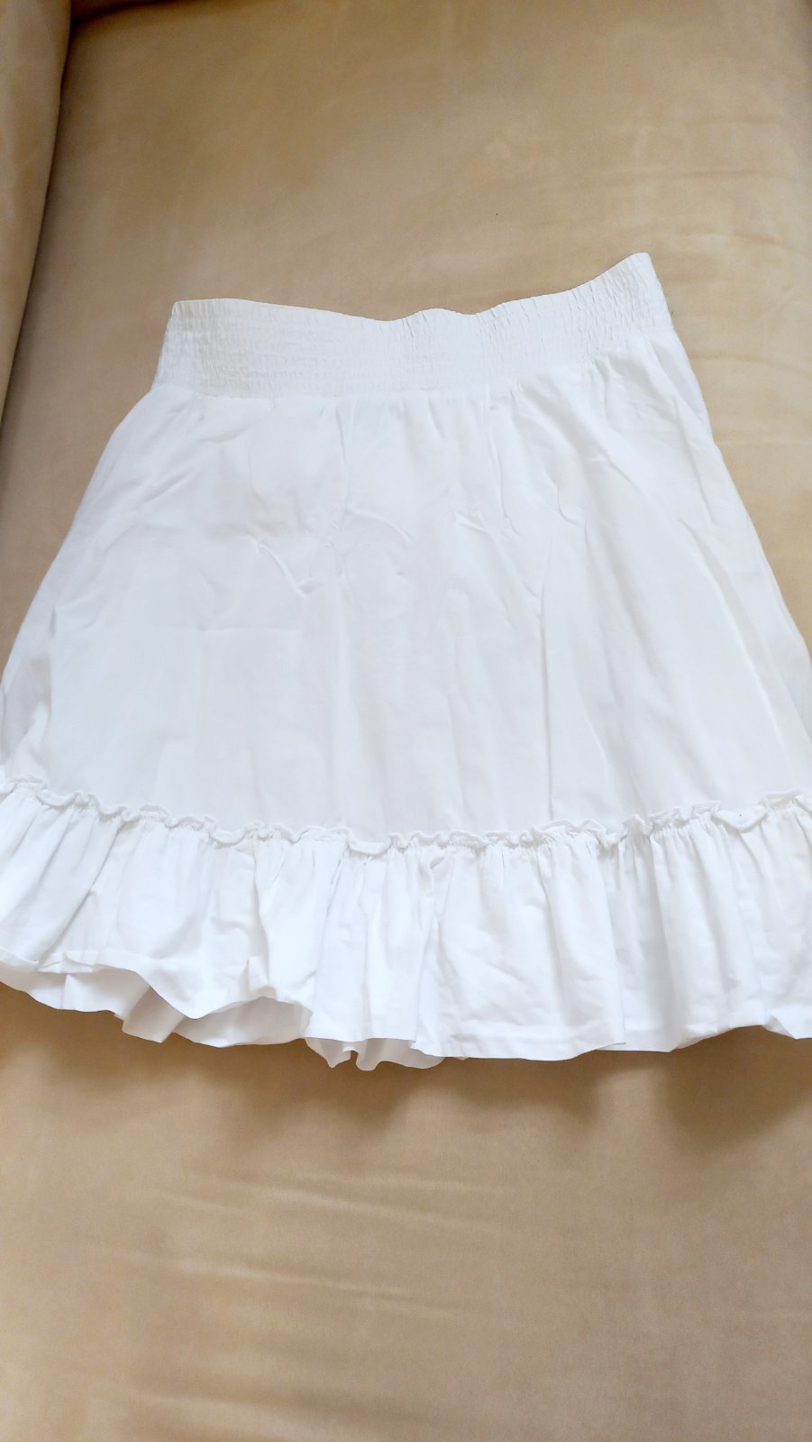 V páse široká pohodlná guma. Sukňa je rozšírená. Dĺžka 50 cm. Príjemná látka, nie umelá, ale bavlna. Podšitá je píjemnou podšívkou, materiál ako plienka. Vhodná S/M.