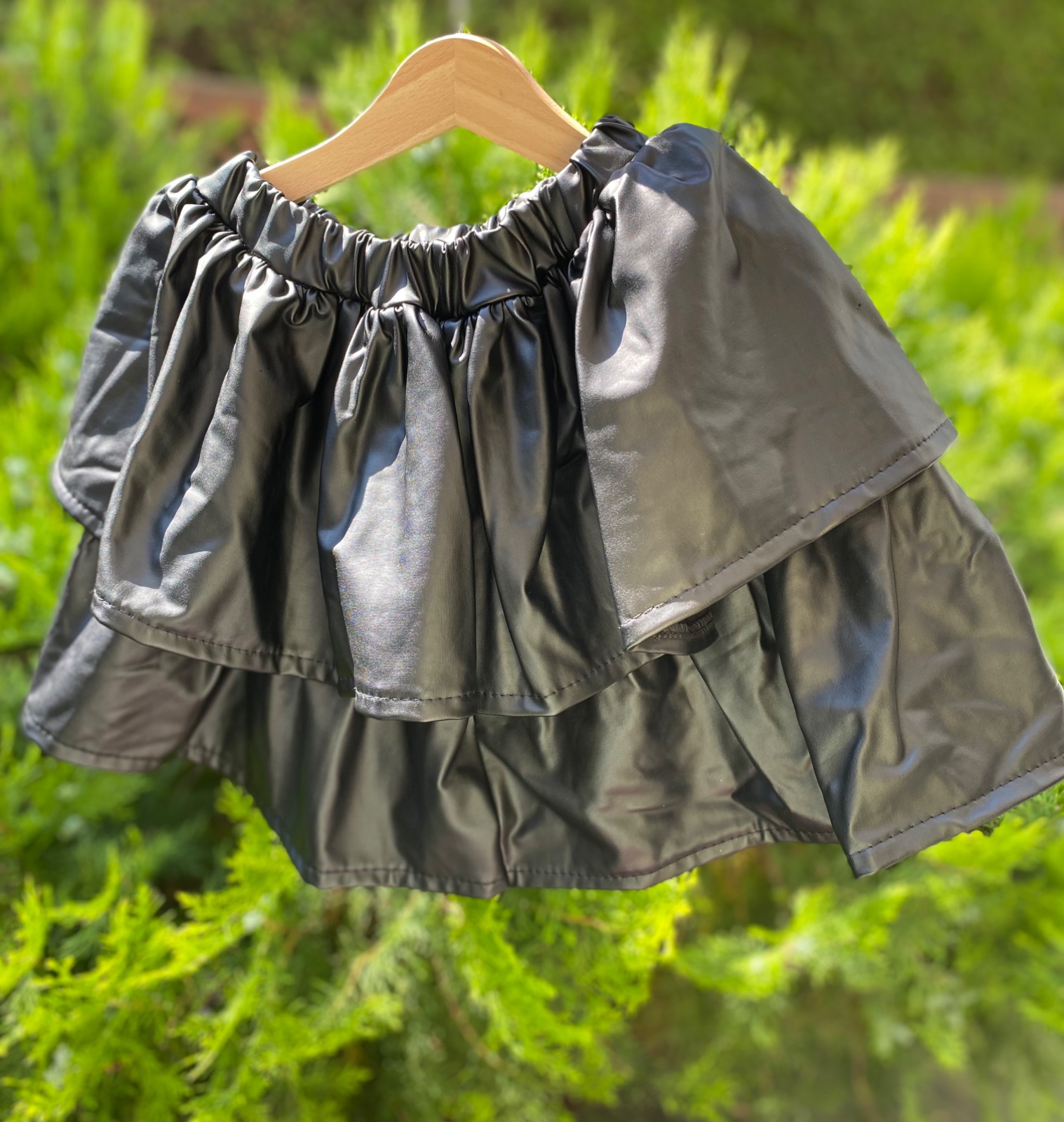Predám detskú koženková čiernu sukňu. Oblečená bola raz na 1 vystúpenie. Sukňa je v 100 % stave. Nádherná a pohodlná sukňa. V páse gumička. Pre každú slečnu, ktorá sa rada parádi :)