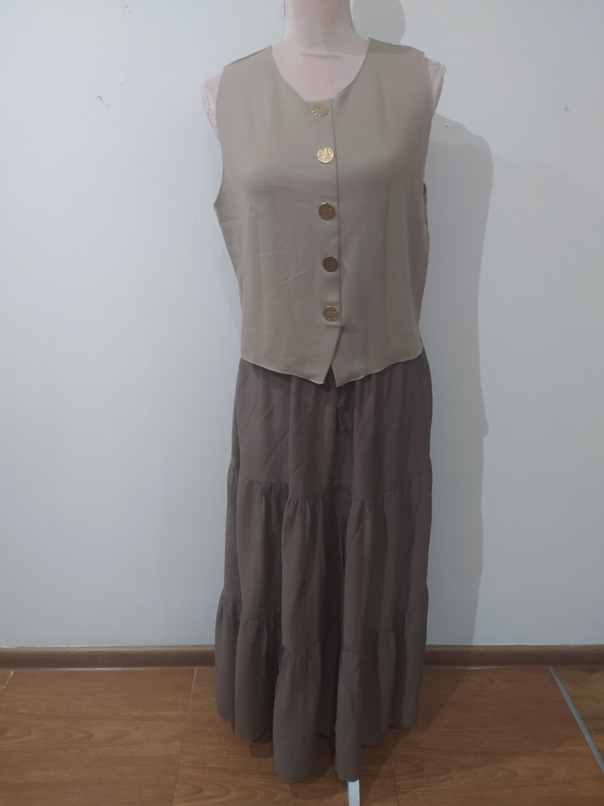 Dlhá maxi sukňa, podšita,vo švíkoch vrecká,v páse guma,nenosena Dl 90,pás v kľude 38*2 499,vkr23