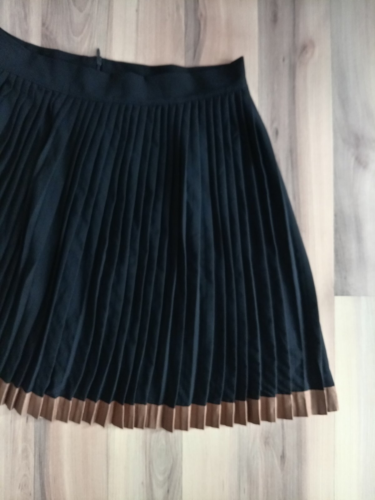Krásna sukňa čiernej farby, top stav. Len na páse pidi dierka od visačky, čo nevidno, len upozorňujem. Hnedý lem