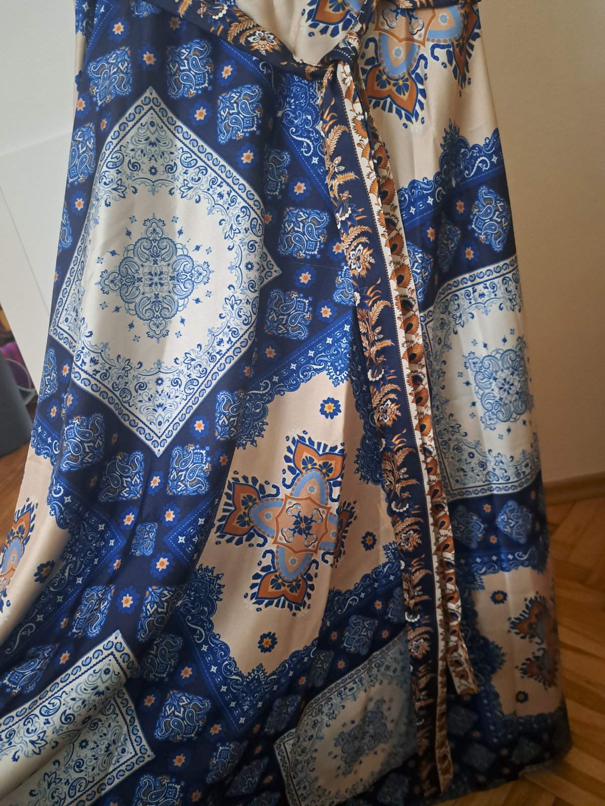 Krásna saténová s opaskom, vzadu má pás všitú gumu, 2x oblečená top stav