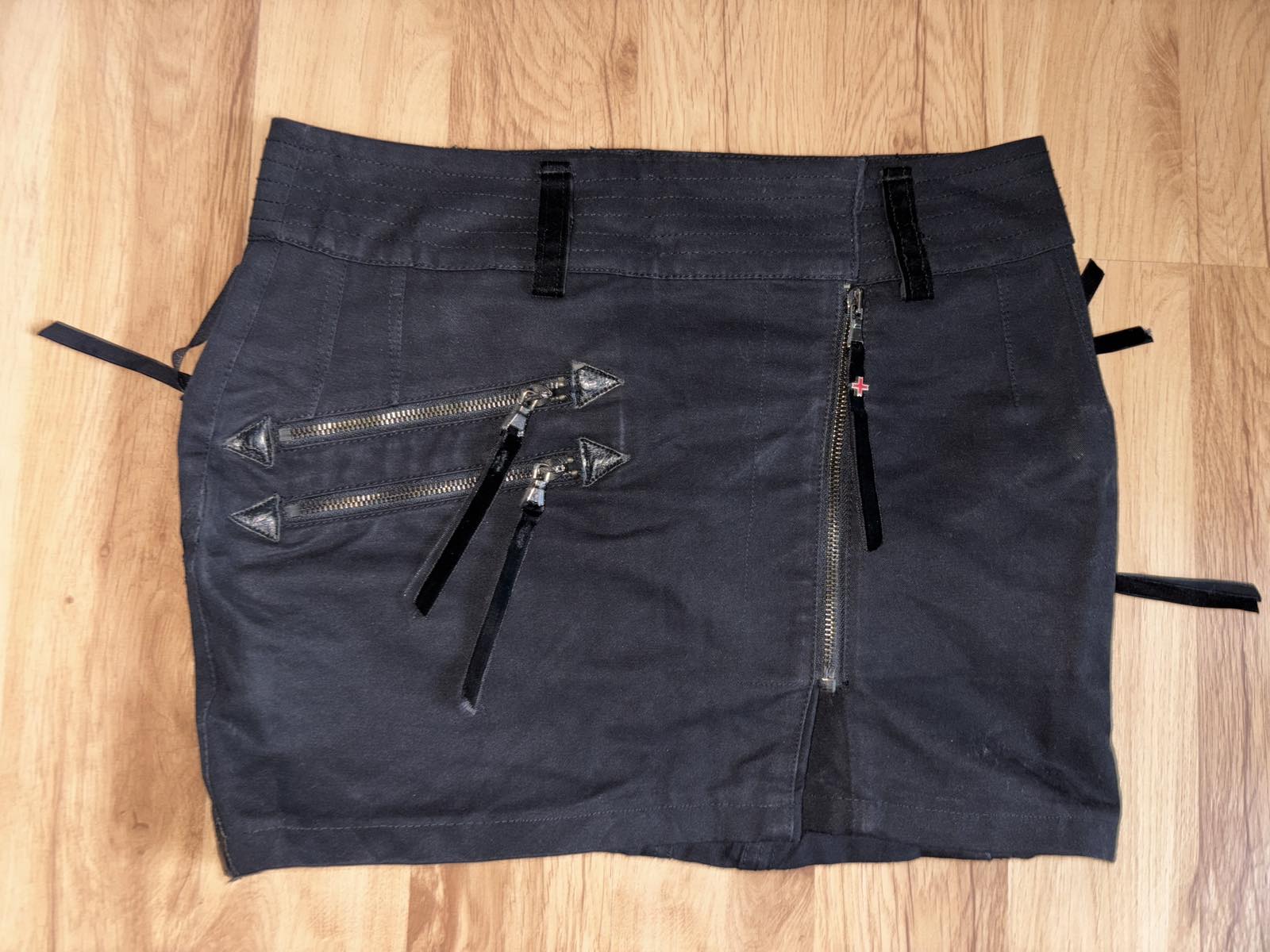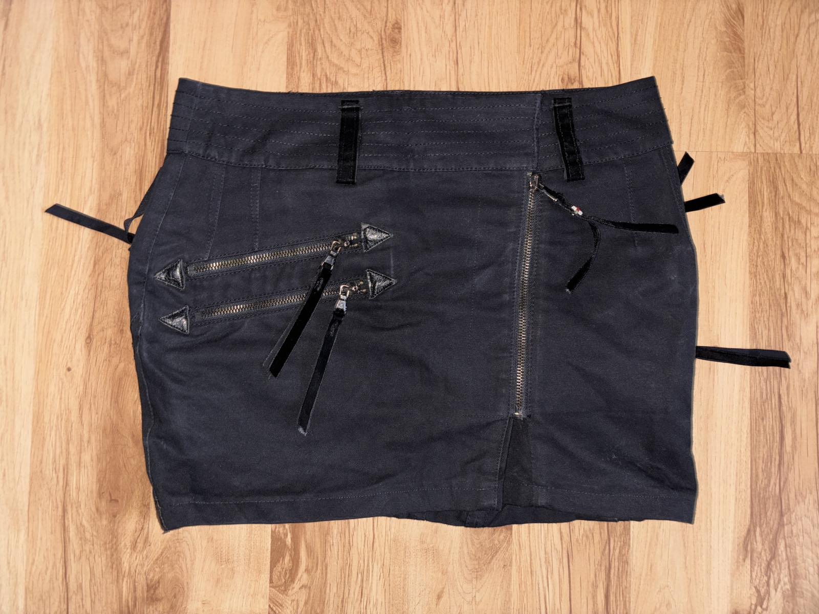 výborný stav,sýto-čierna,pevnejšia,nositeľná celoročne,kombinovaná s kožou,zamatovými detailami na zipsoch,špičková,veľkosť IT 40,EUR 36/38,pás-bedrá 41 cm,boky 49 cm,d.36 cm