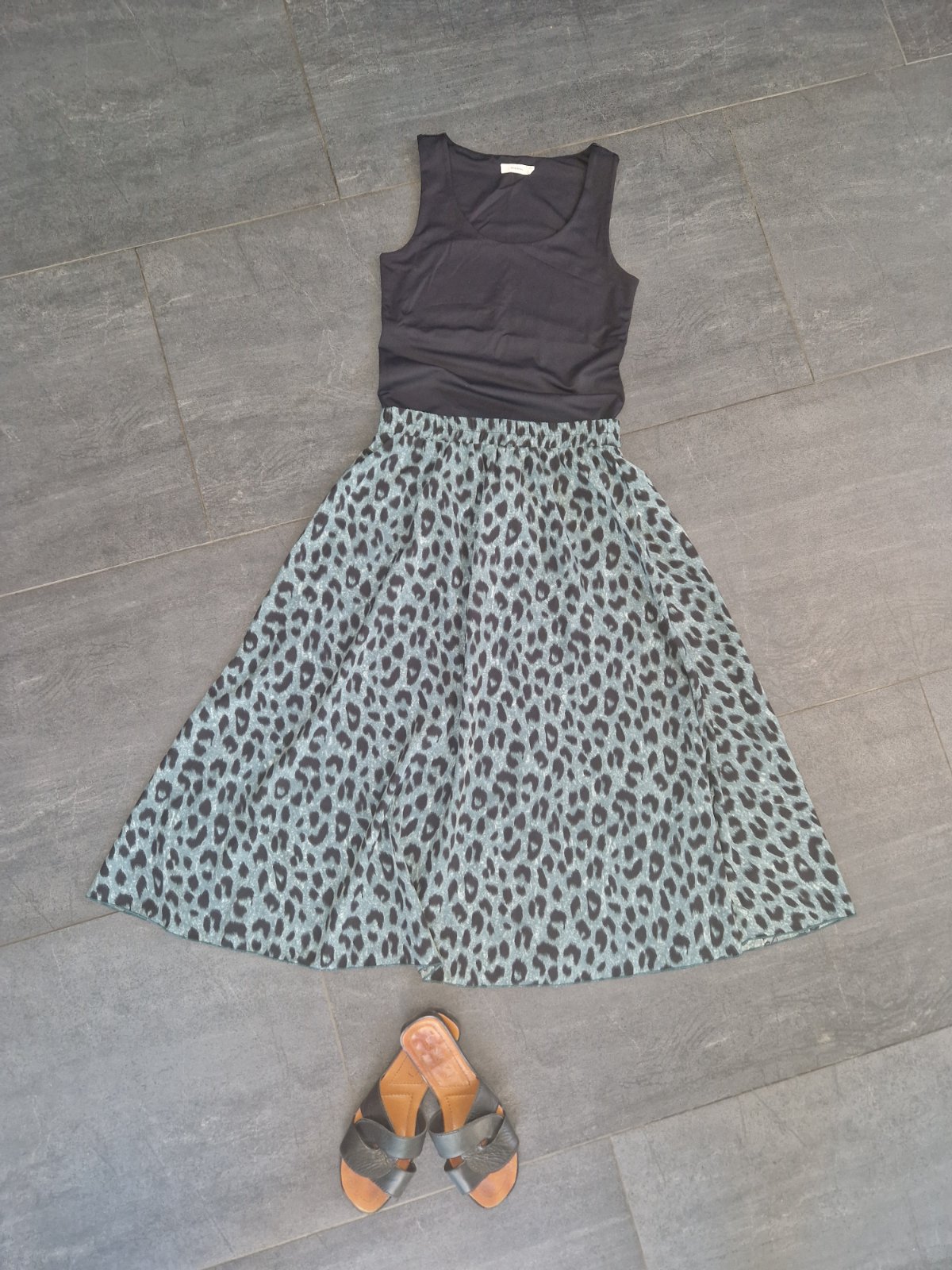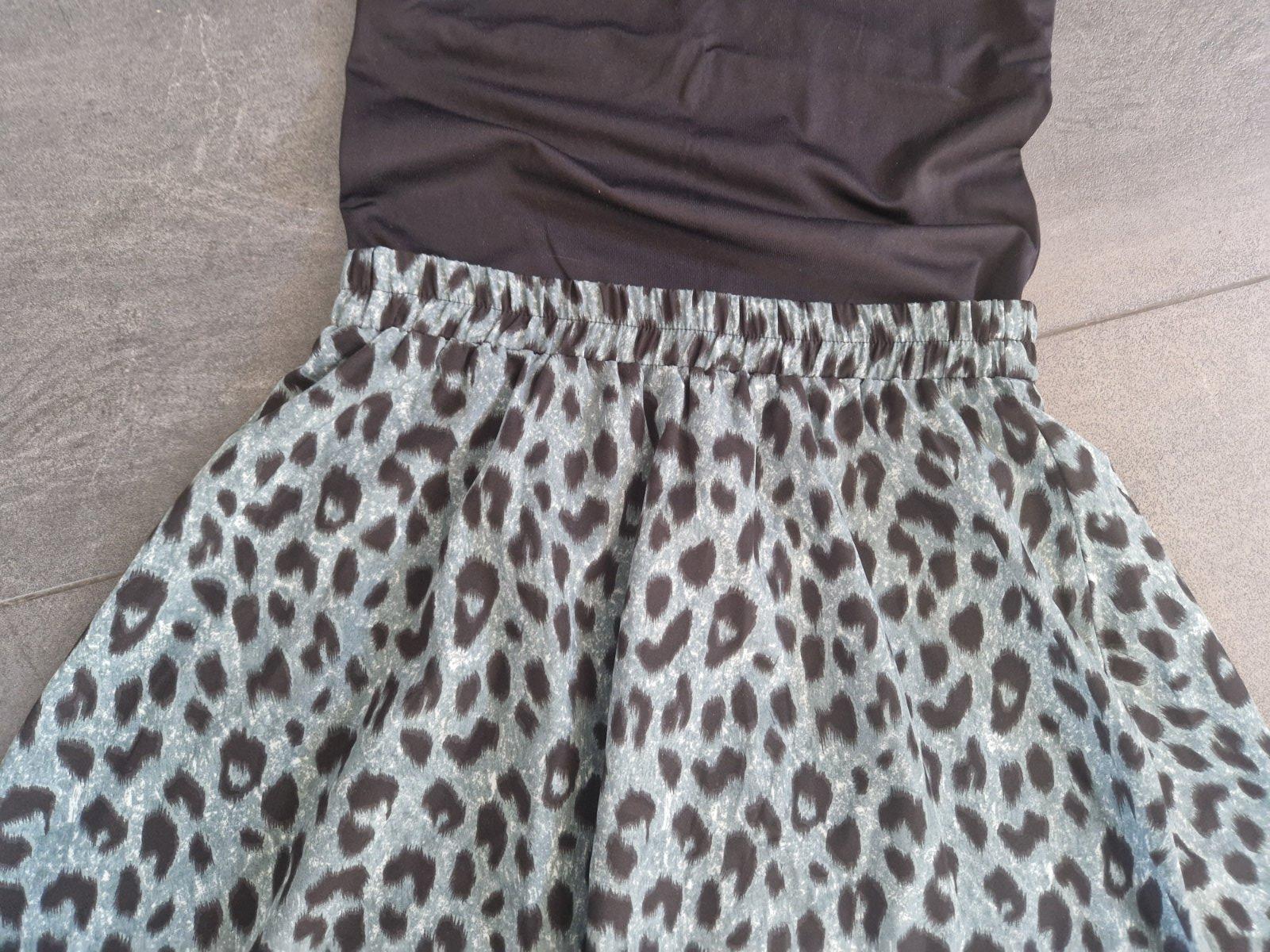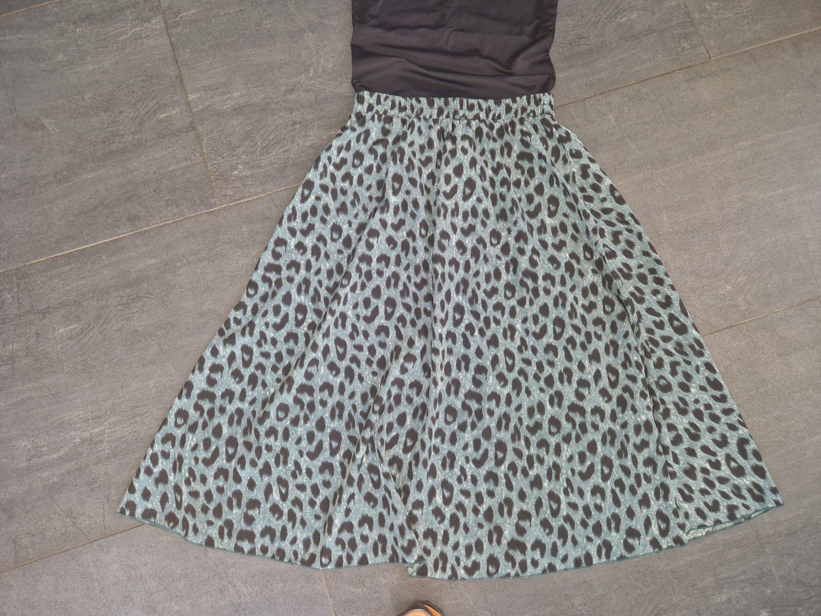 Krásna padavá širšia sukňa,s leo vzorom v zeleno čiernej farbe.super stav. Pás na gumu 35, dĺžka 78. Reálna farba na posl.2 fotkách. Taká zelenosivá.