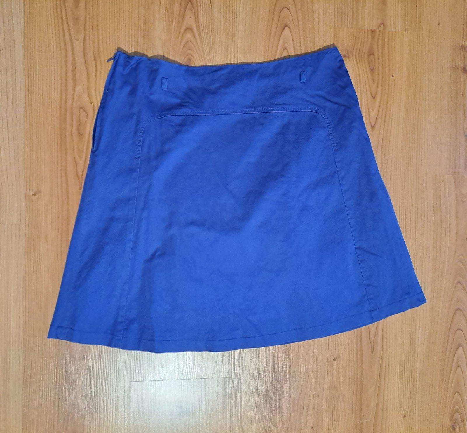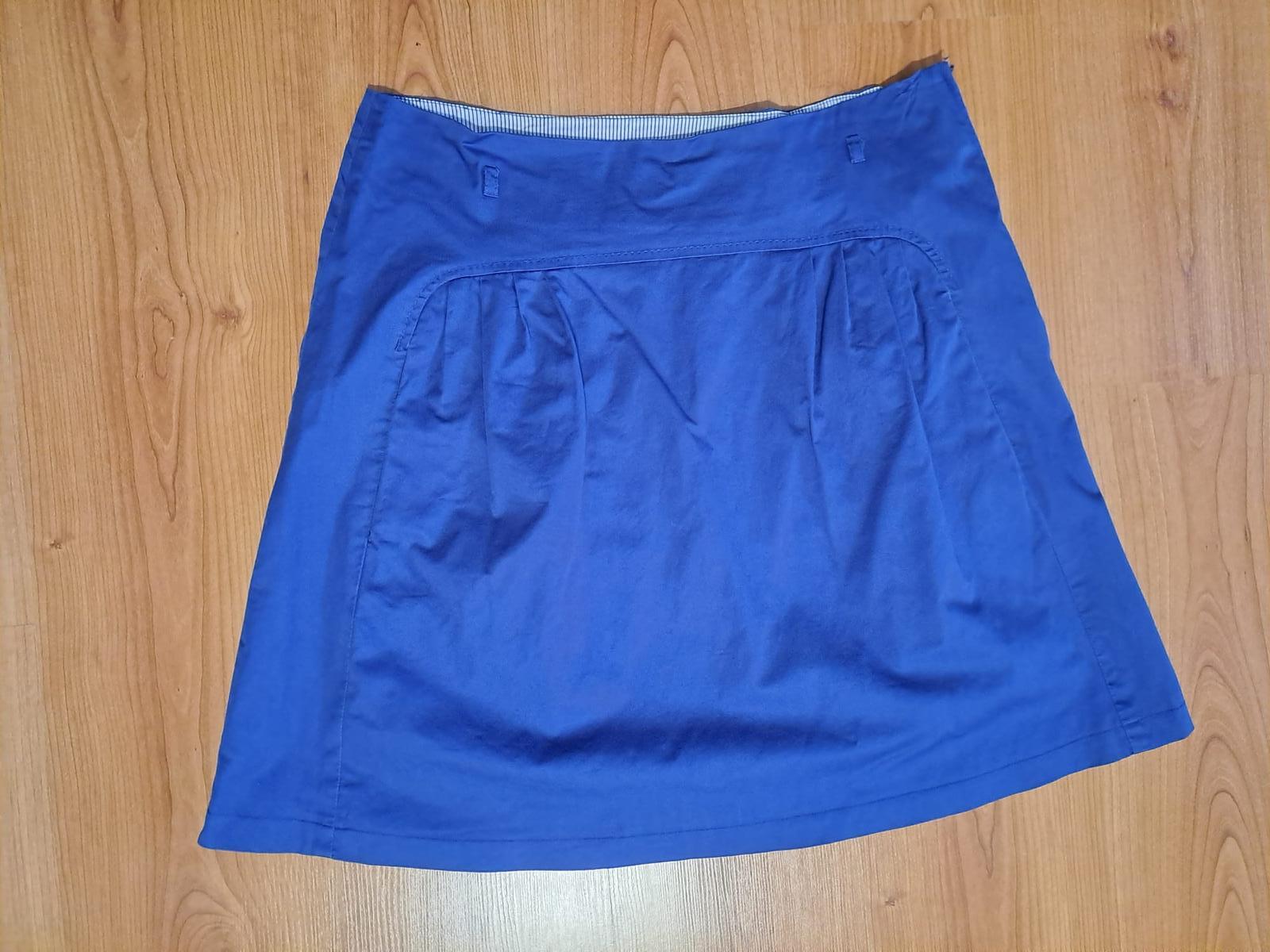 Predám nepoužitú sukňu. Farba tmavomodrá. Nepodšitá, mierne elastická. Uvedená veľkosť 42. Dĺžka pod kolená. Rozmery: dĺžka 64cm, šírka v páse 2x 42cm (natiahne sa o 1-2cm, šírka na bokoch 2x 52,5c...