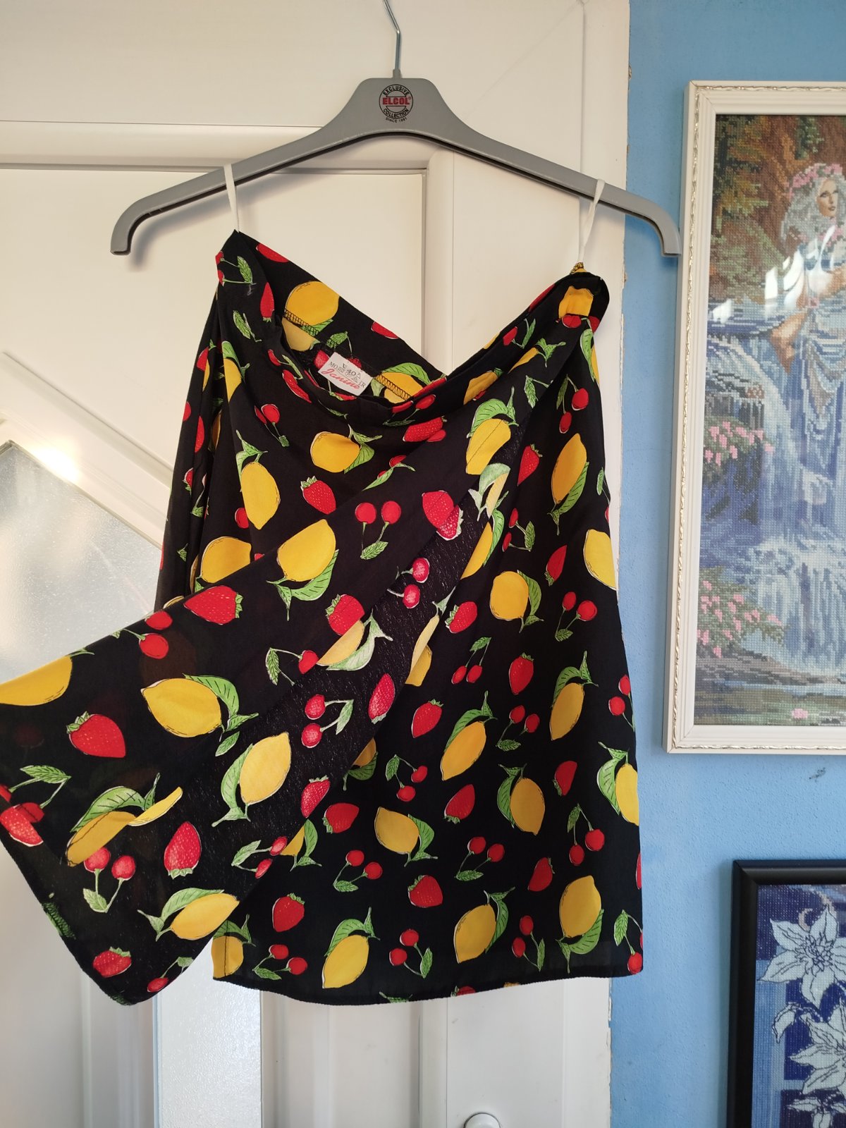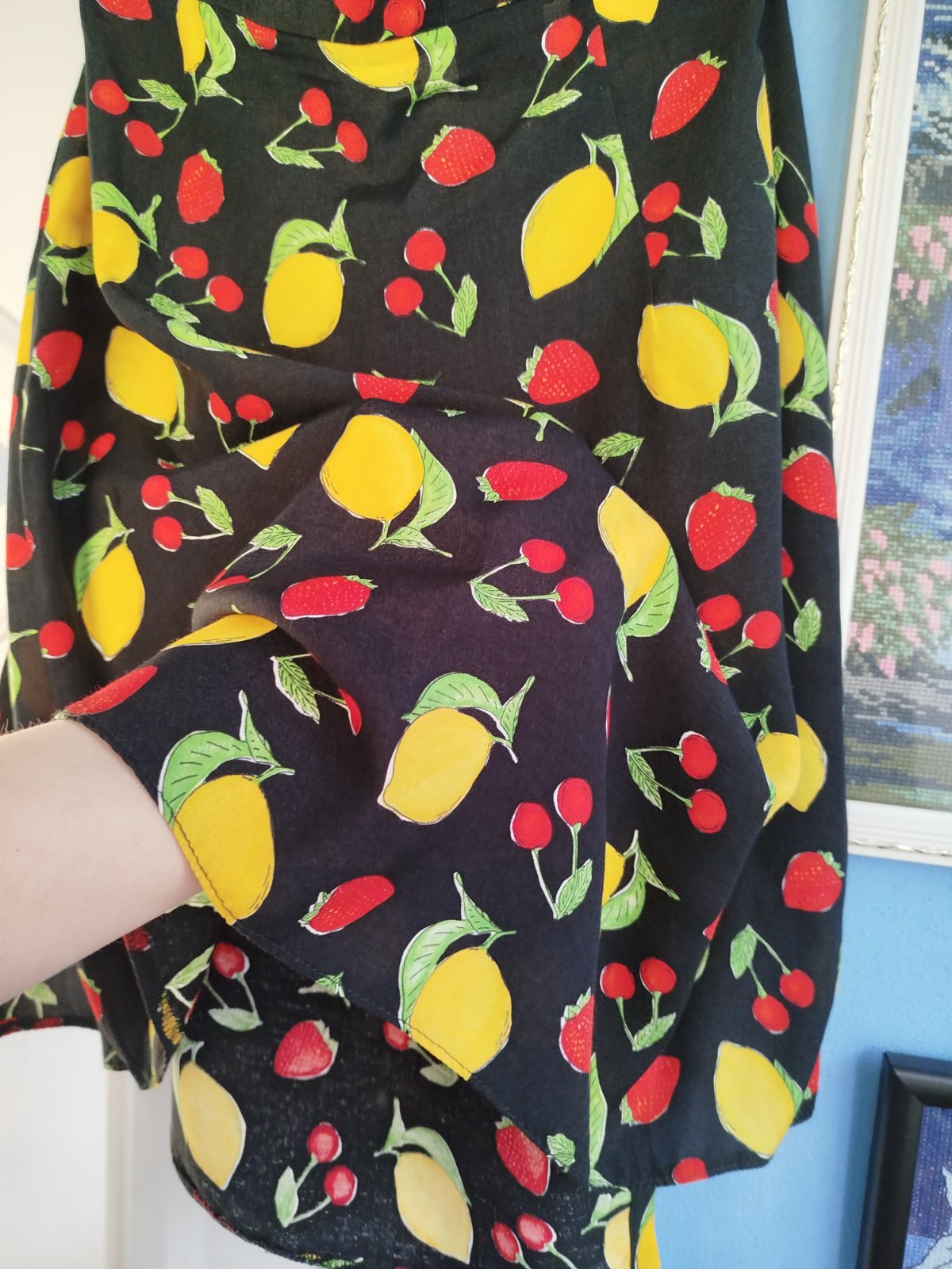 - super stav, žiadne poškodenie, na 2cvoky, základna farba sýta čierna, tenučký material, ľahky, nekrčivy, idealny na leto