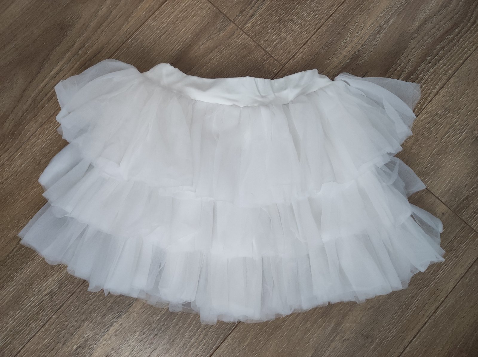 Tylová sukňa zn. H&M, podšitá, pružný pás, viac vrstiev volánov. Veľkosť uvedená 128, premerajte: dĺžka 31 cm, pás 28-40 x 2 cm. Výborný stav Cena 4,90 + pošt.