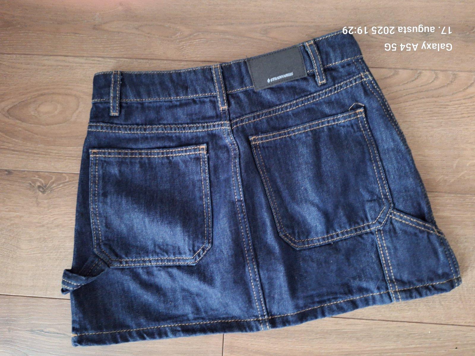 Rifle a minisukna Stradivarius, mäkká riflovina. Veľkosť 34. Dĺžka 34 cm pas 36 cm