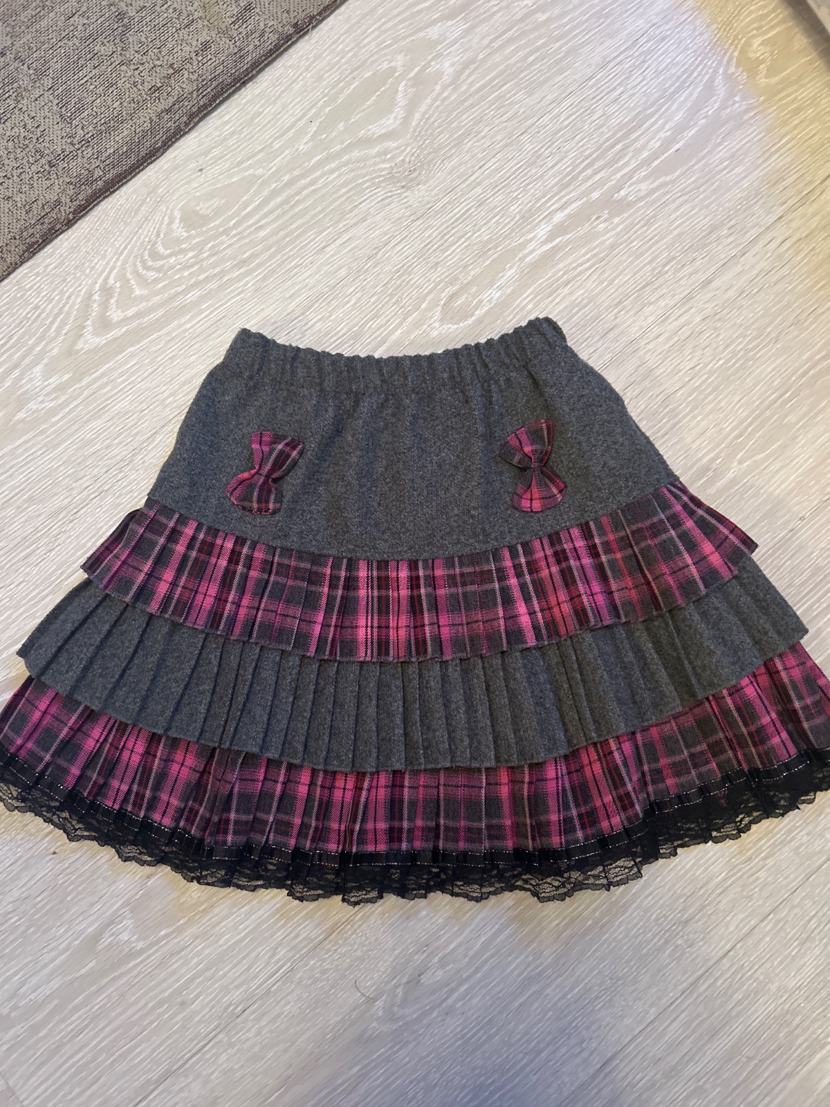 Pekna upletova suknicka- nova, s visackami. Je pretkavana striebornou nitkou. ROZMERY: celkova dlzka od pasa: 34cm, sirka v pase: 33cm (snurka v pase nie je funkcna).