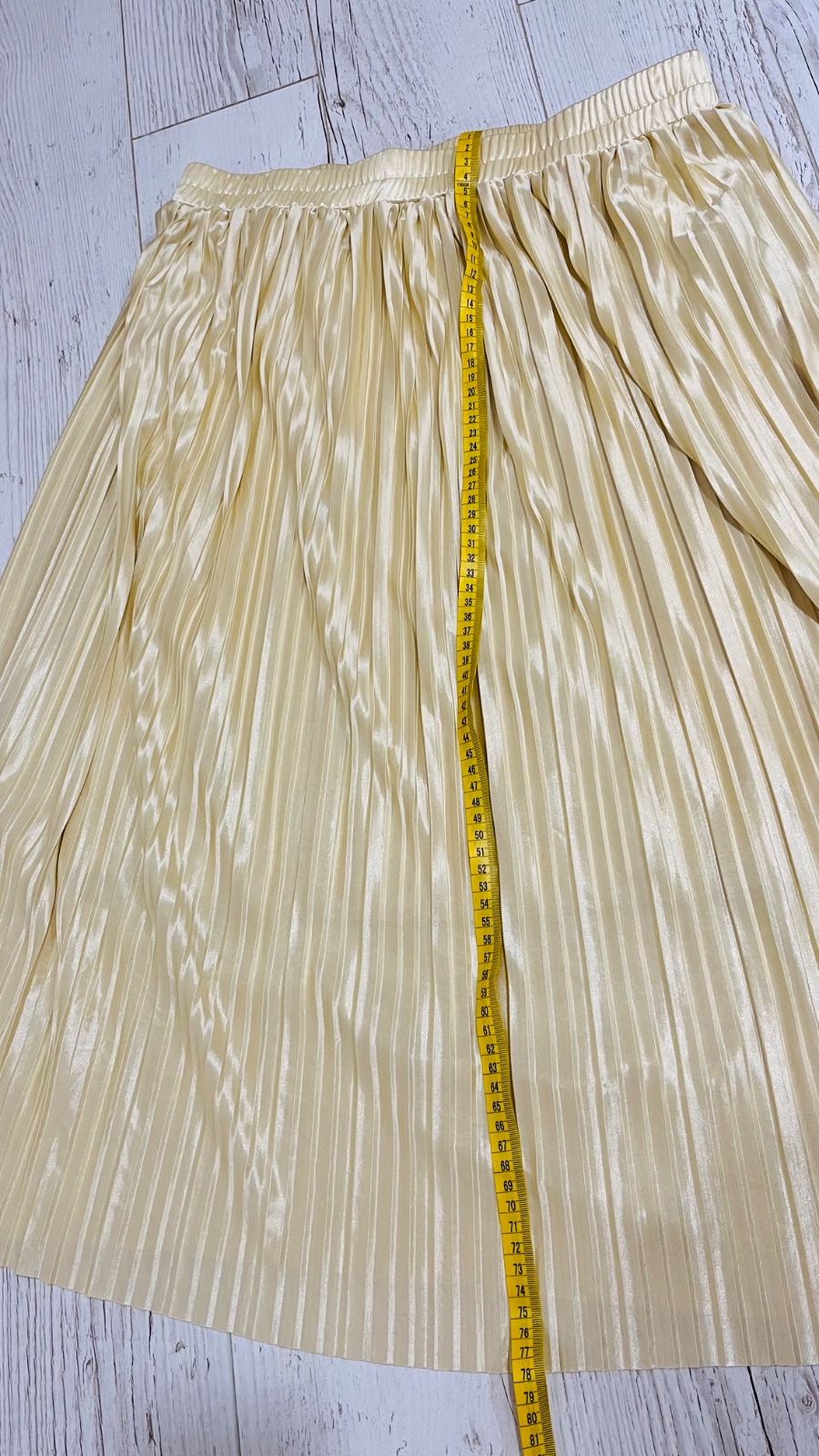 Sukna oblečená párkrát. Bez poškodenia. Skladana. Veľkosť sedí. Aj farba na foto sedí, taká svetlulinko zlata.