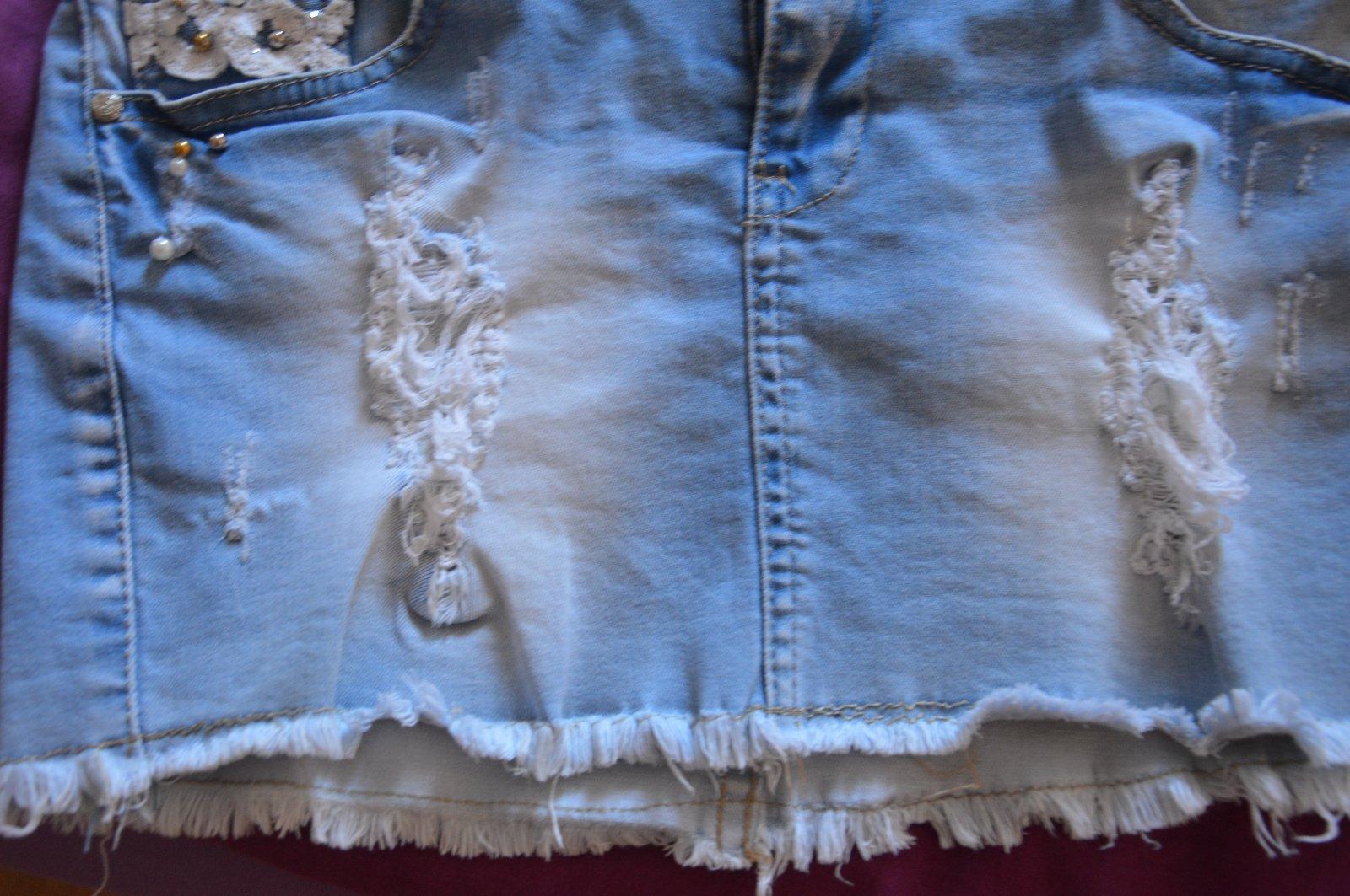 Predám málo nosenú krátku rifľovú sukničku.Má čipkované aplikácie na vreckách a spredu je ako keby otrhaná.Je elastická.Veľkosť 26.V prípade záujmu premeriam.Cena 5 eur plus poštovné.