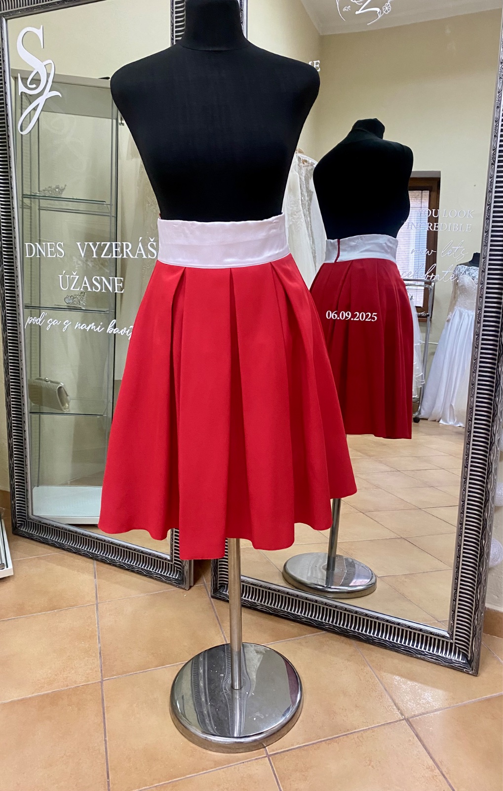 Dámska červená sukňa s bielym pásom. Zips vzadu.