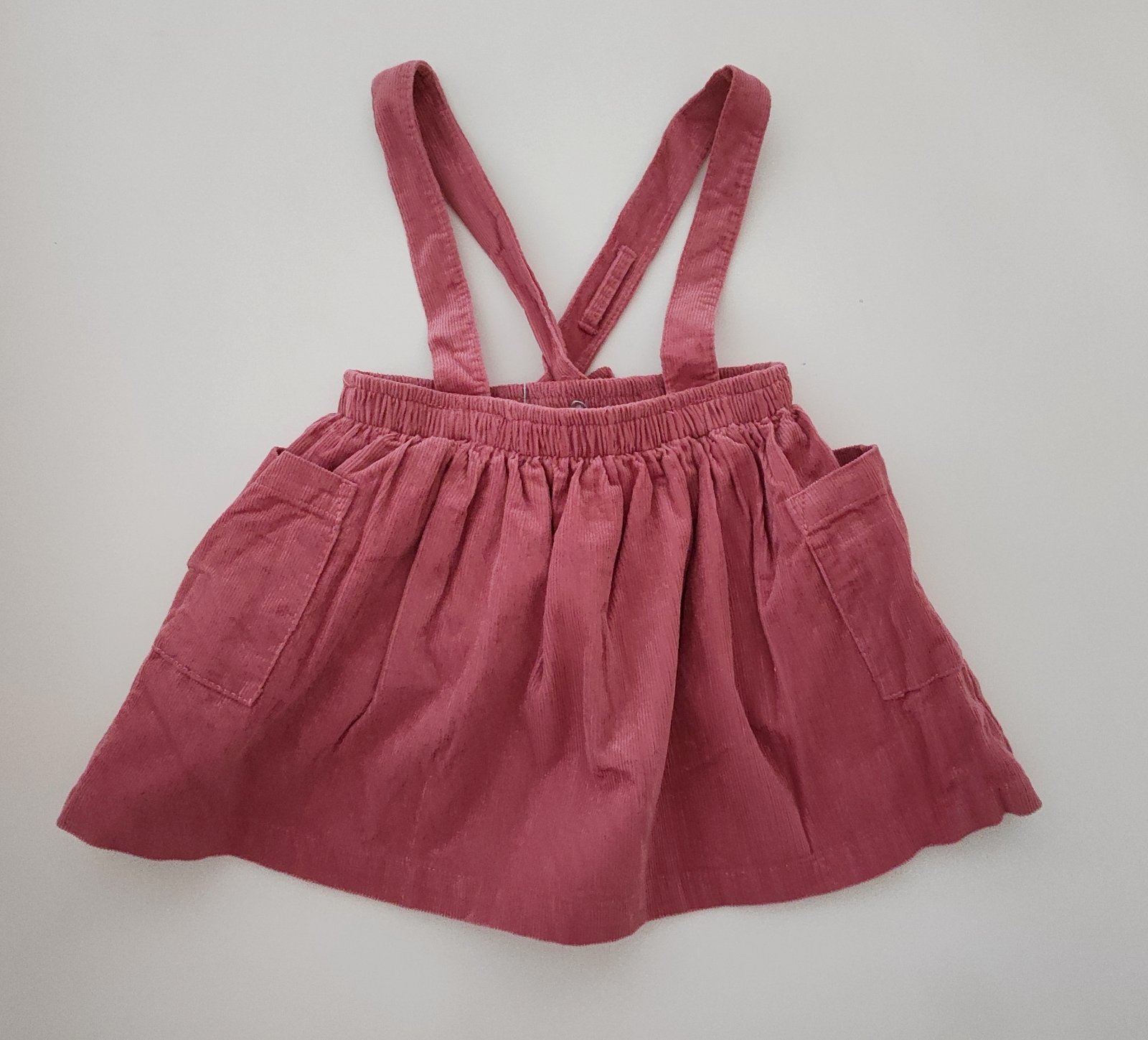 hrubšia bavlnená ružová suknička s bielymi bodkami,v páse guma+šnúrka na stiahnutie,vhodná aj na jeseň,zimu,veľkosť udávaná výrobcom je č.92/98,v super nosenom stave bez poškodení CD:22cm Pás 2x21c...