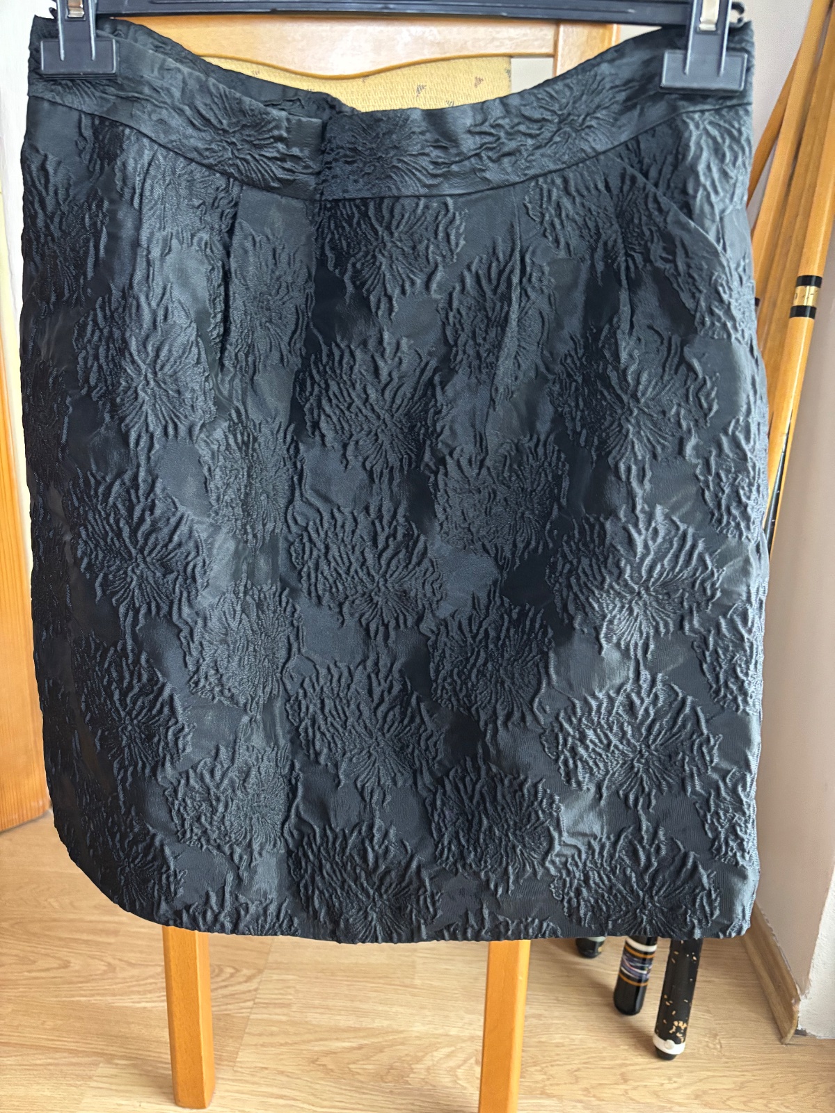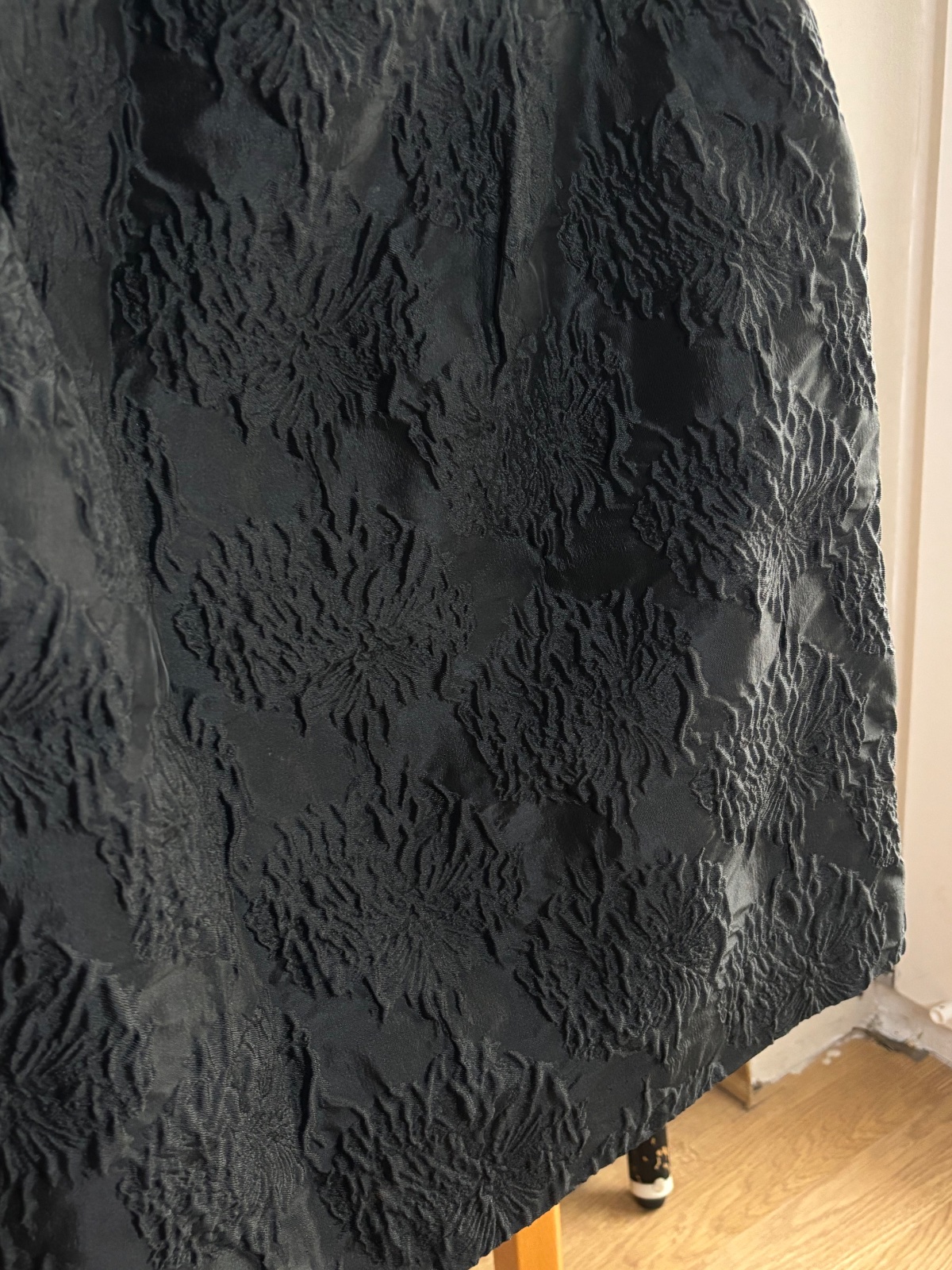 Elegantná čierna midi sukňa s podšívkou. Miery: 2 x 47-50cm pás, 2 x 58-59 cm boky, 90 cm dĺžka.