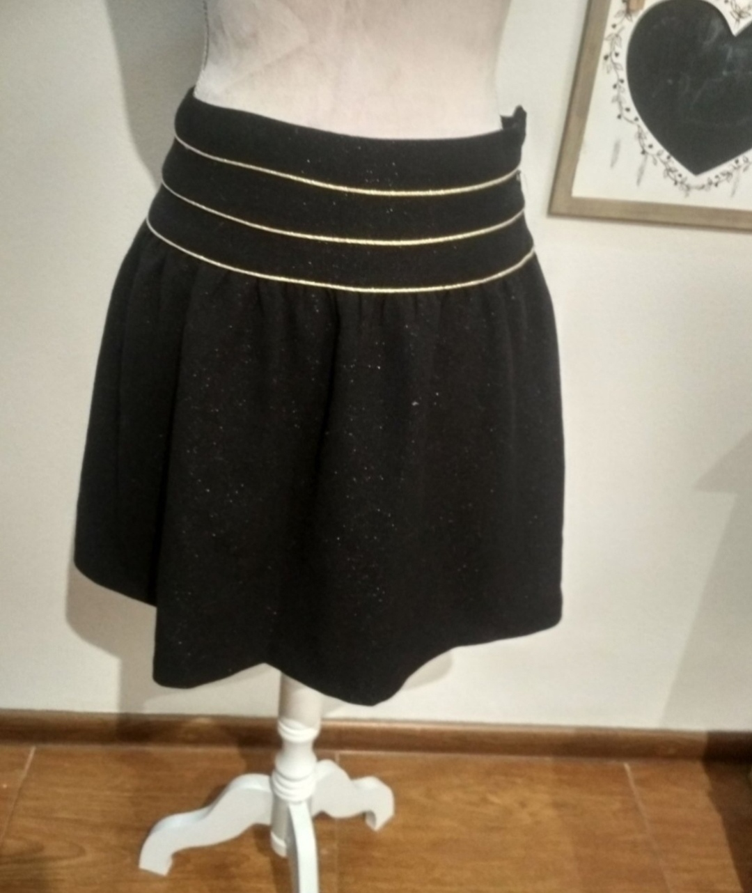 Suknička v top stave,zdobená zlatými doplnkami,látka má v sebe jemne zlaté trblietky,podsita