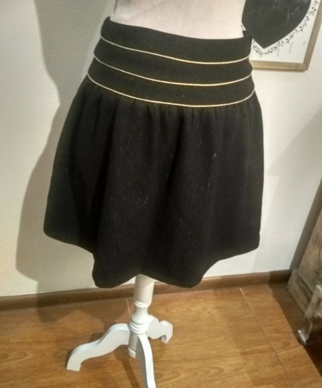 oblečená na jednu príležitosť cca 1 hodinu, bez vád, preto uvádzam ako nová, podšitá čiernym saténom, pás pevný 38 cm, dĺžka 45 cm, tak po kolená resp. nad kolená, zapínanie na zips vzadu + gombík...