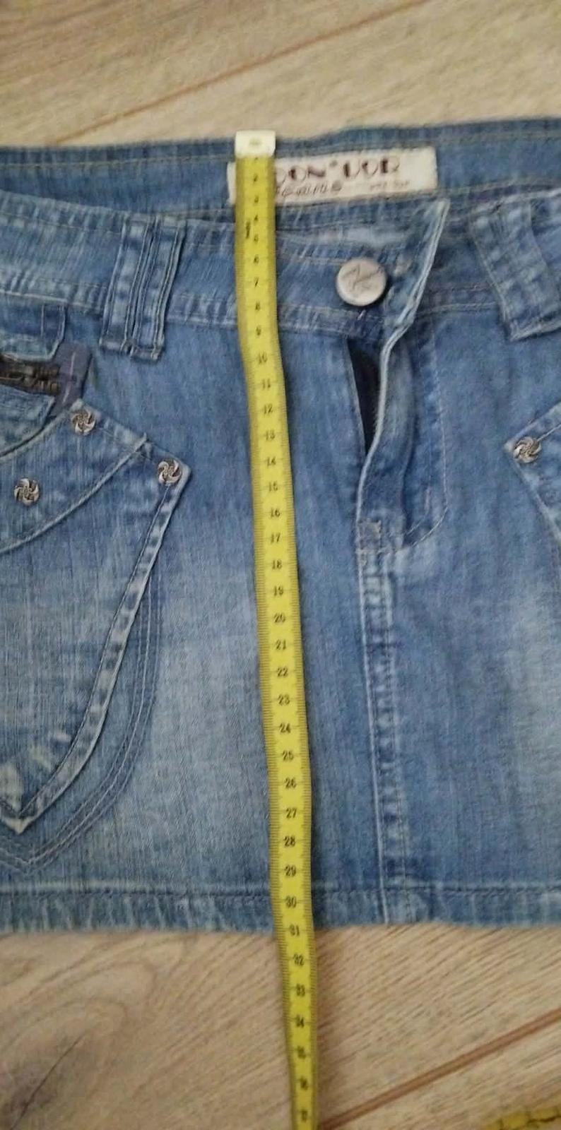 Štýlová džínsová mini sukňa v modrom odtieni s ozdobnými kovovými detailmi na predných vreckách. Má nízky pás, zapínanie na gombík a zips. Džínsovina je pevná, ale príjemná na nosenie. Sukňa pekne drží tvar a zvýrazní postavu. Ideálna na leto, festivaly alebo bežné nosenie s topom či crop mikinou.