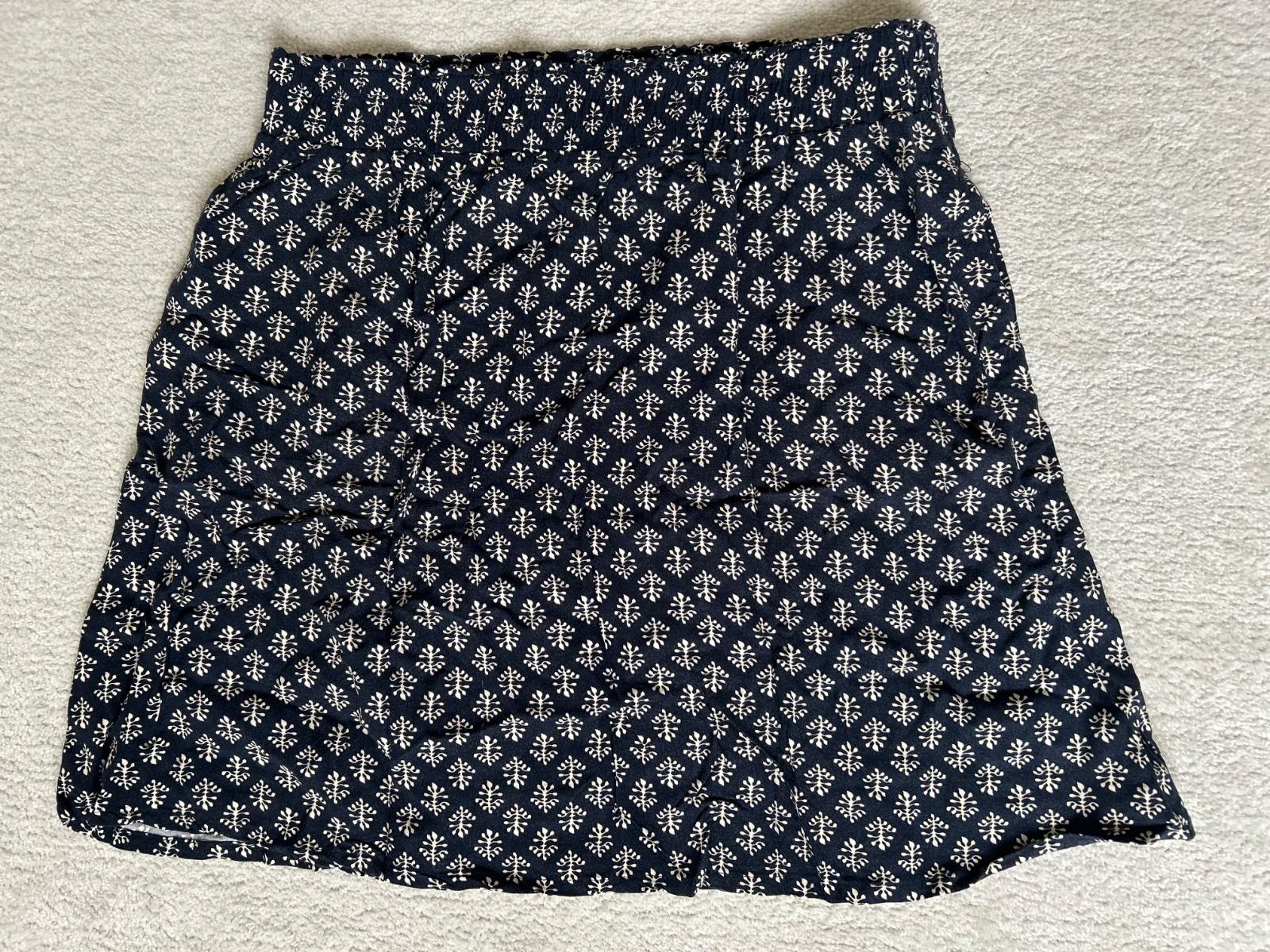 Pekný nosený stav. Jemné žmolky a mierne vyblednutá farba. Pás má pevný a vzadu zips. Nie je elastická. Látkový opasok na zaviazanie. Pás 38, bočná dĺžka 50