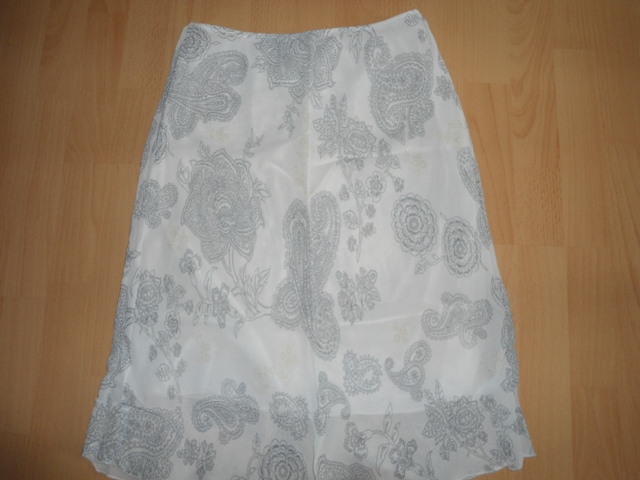 344d. biela suknicka, letna tenka, velk. 36/38cm, Motion, dlzka 64cm, pas 37x2cm plus gumka do 43x2cm, podsita, boky 48x2cm, pas ma jemnu gumku, 100% viskoza