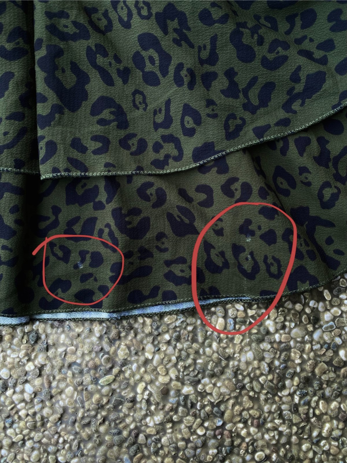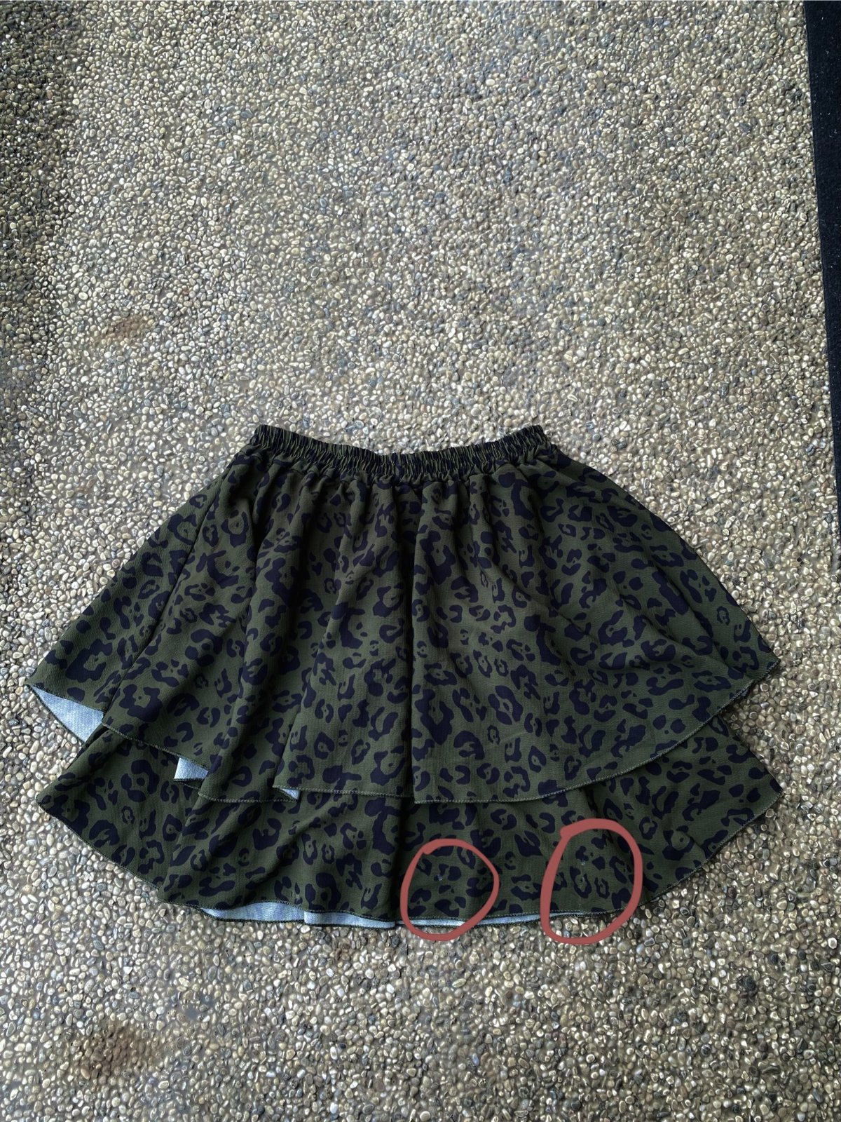 Len vypraná, úplne krásny top stav. Problém je akurát to, že na zadnej spodnej strane sú také "biele" miesta (zakrúžkované červenou), asi nejaká povytiahnutá štruktúra od stroja vo výrobe, naozaj netuším, všimla som si to až teraz, ale verím, že šikovná žienka si tam vie došiť nejakú čipku alebo čokoľvek iné a zakryje sa to.