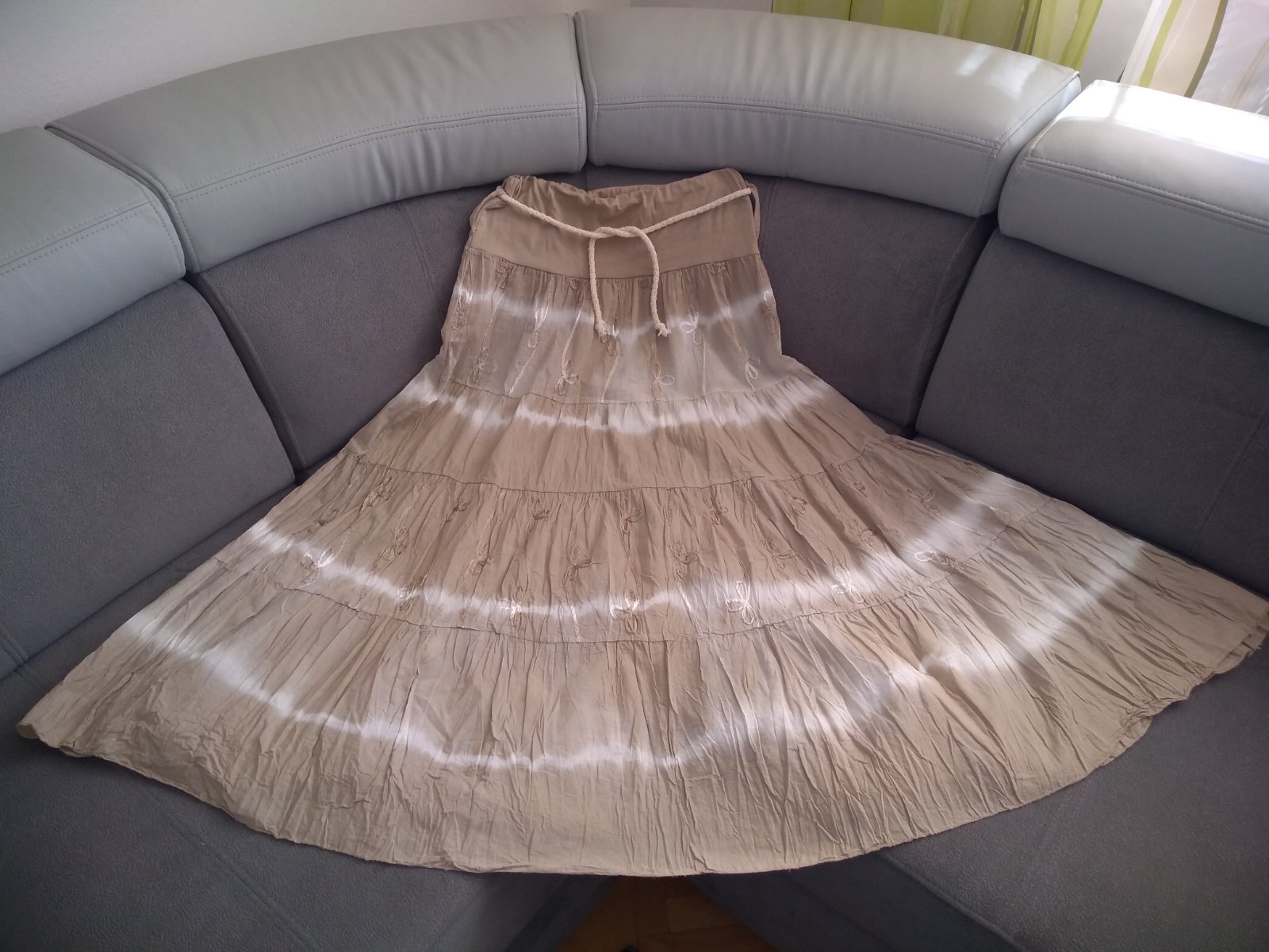 Batikovaná bavlnená sukňa,v páse na gumu, top stav. Áčkový strih. Dlžka 100cm, Pás 80-100cm, boky 150cm, šírka celkom dole: 170cm. Cena 19Eur