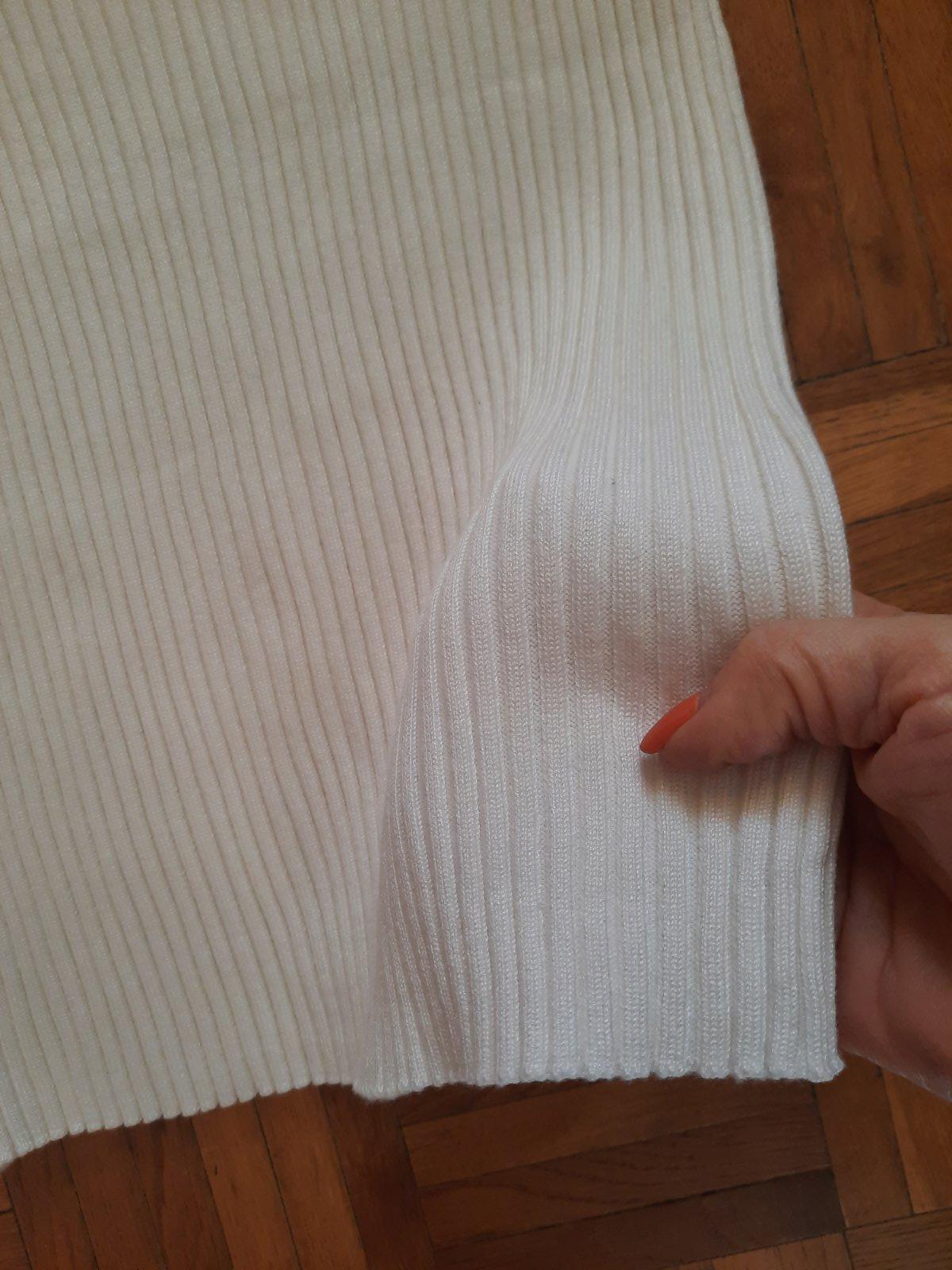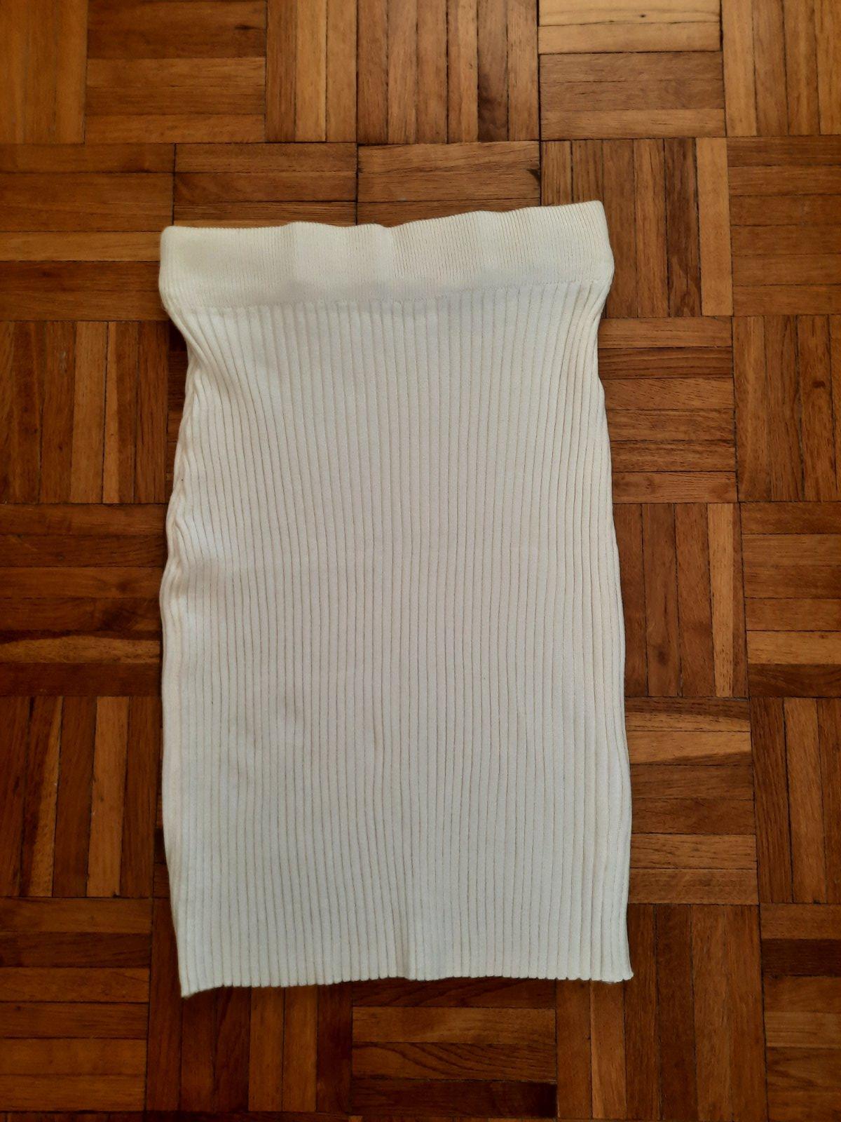 Krásna úpletová elastická sukňa s rebrovaným vzorom. Pás je na gumu. Je ako nová. Farba je maslovo-biela. Vhodná aj pre staršie dievčatá.