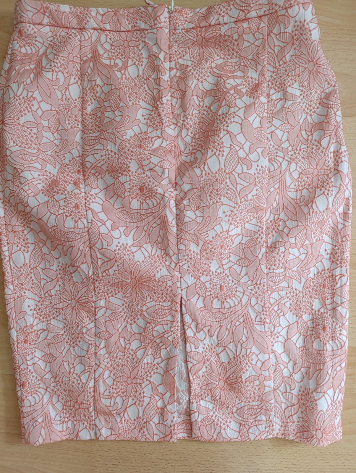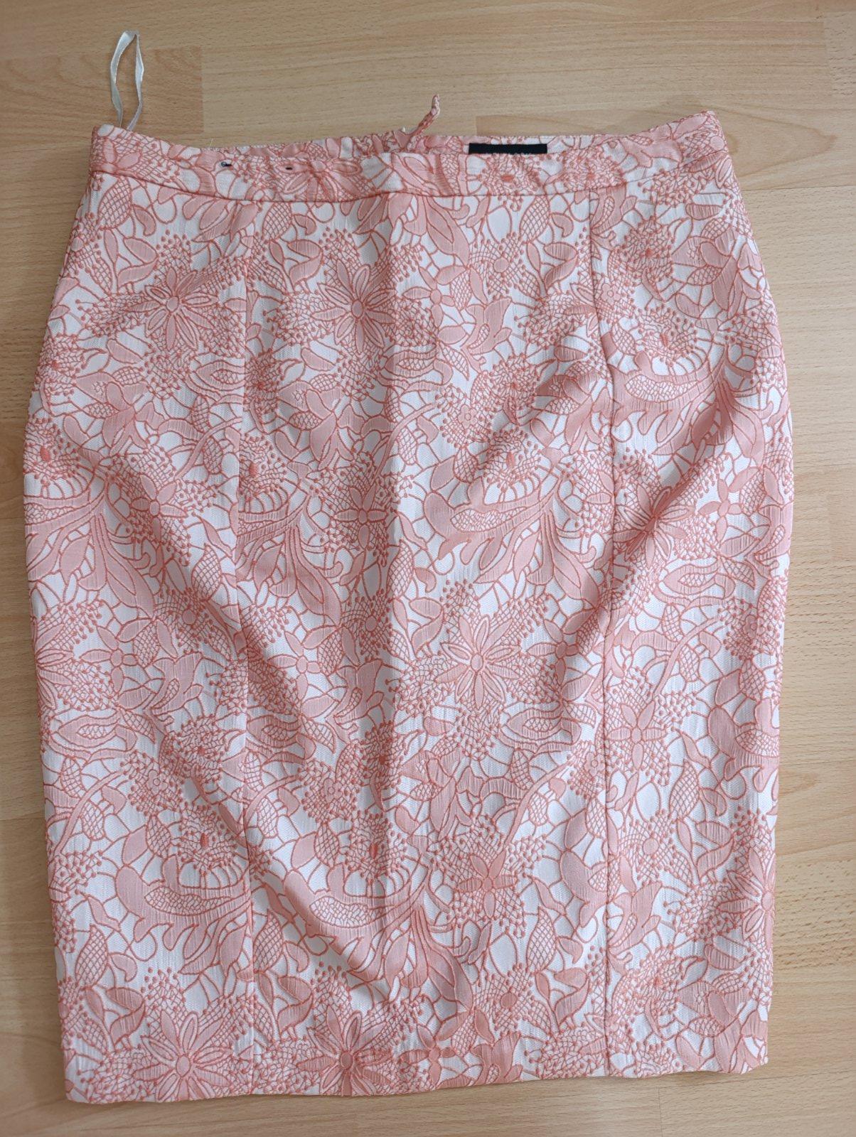 sukňa bez známok nosenia, nie je podšitá, 99% polyester, 1 % elastan, krásny plastický vzor.