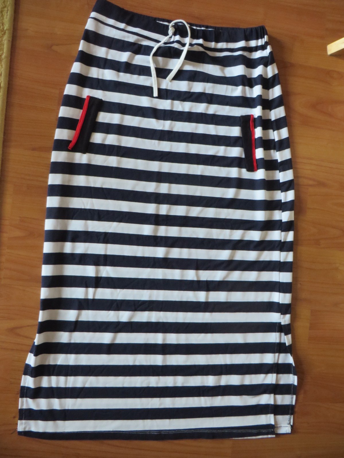 Predám pásikavú dlhú dámsku / dievčenskú sukňu. Veľkosť je M, celková dĺžka je 87 cm, pás je 36,5 cm x2. Látka je padavá, elastická, krásne ukáže na postave. Na bokoch je rázporok.