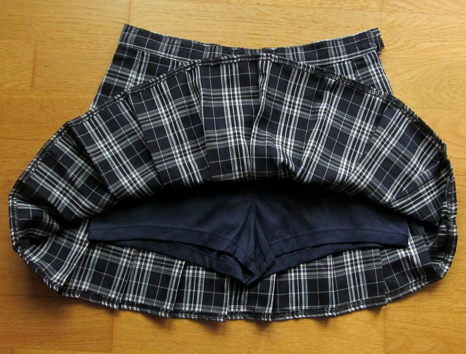 pisana velkost M, ale je mensia. velmi pekna, parkrat oblecena skladana minisukna z karovanej latky, so vsitymi elastickymi ciernymi sortkami. pass cca 34 cm*2 , dlzka cca 37 cm