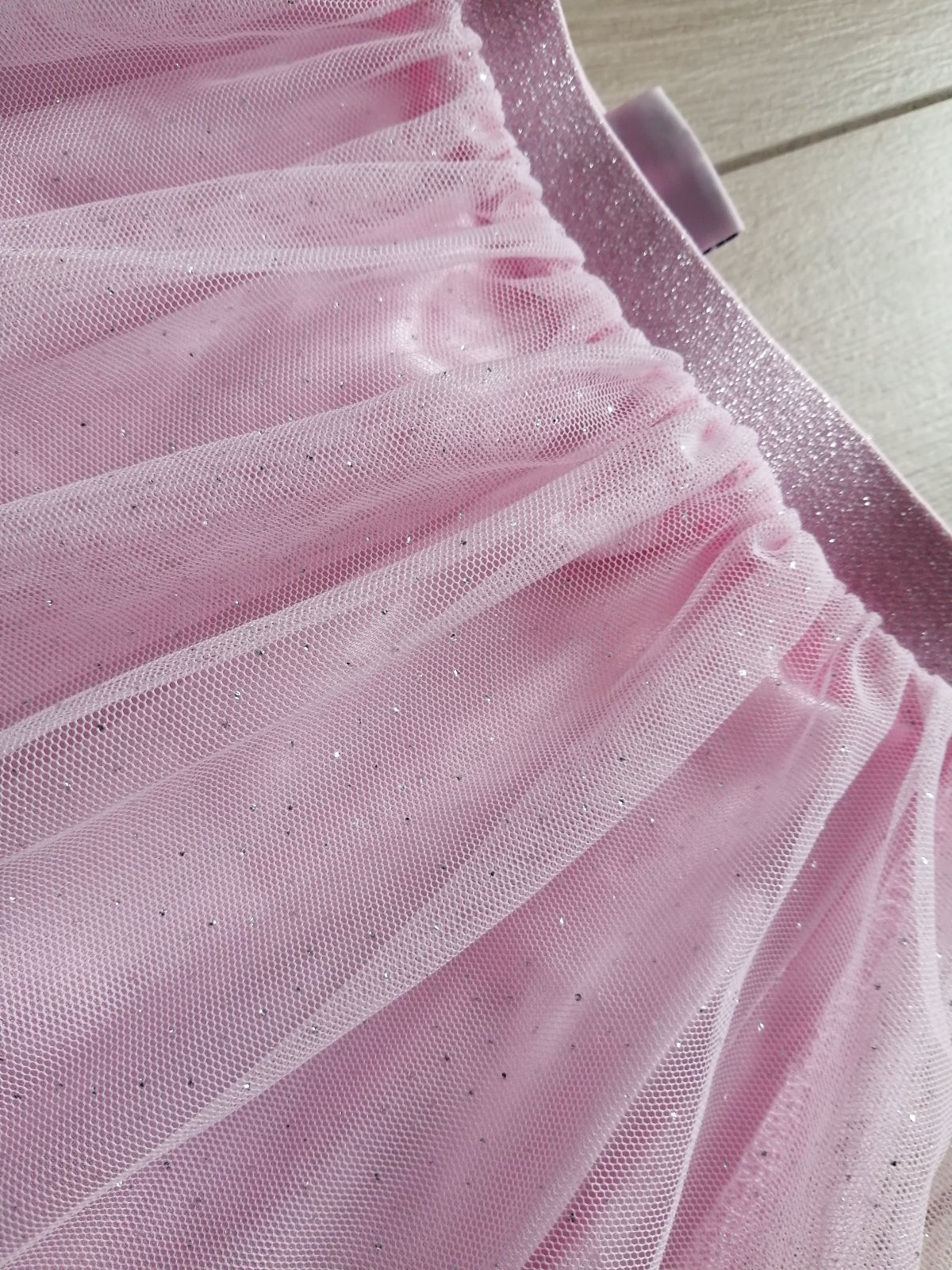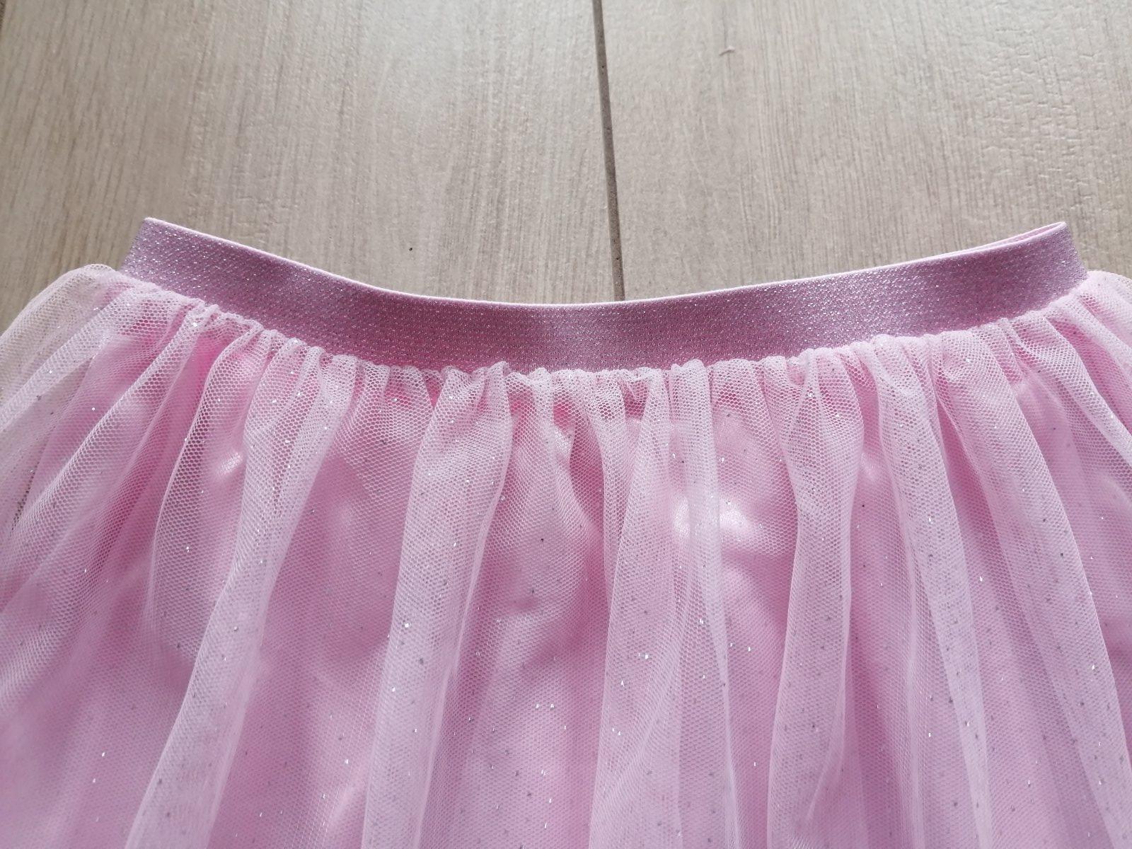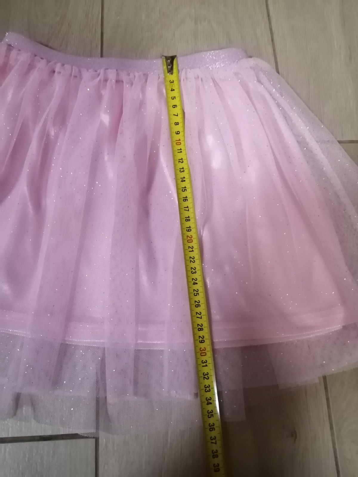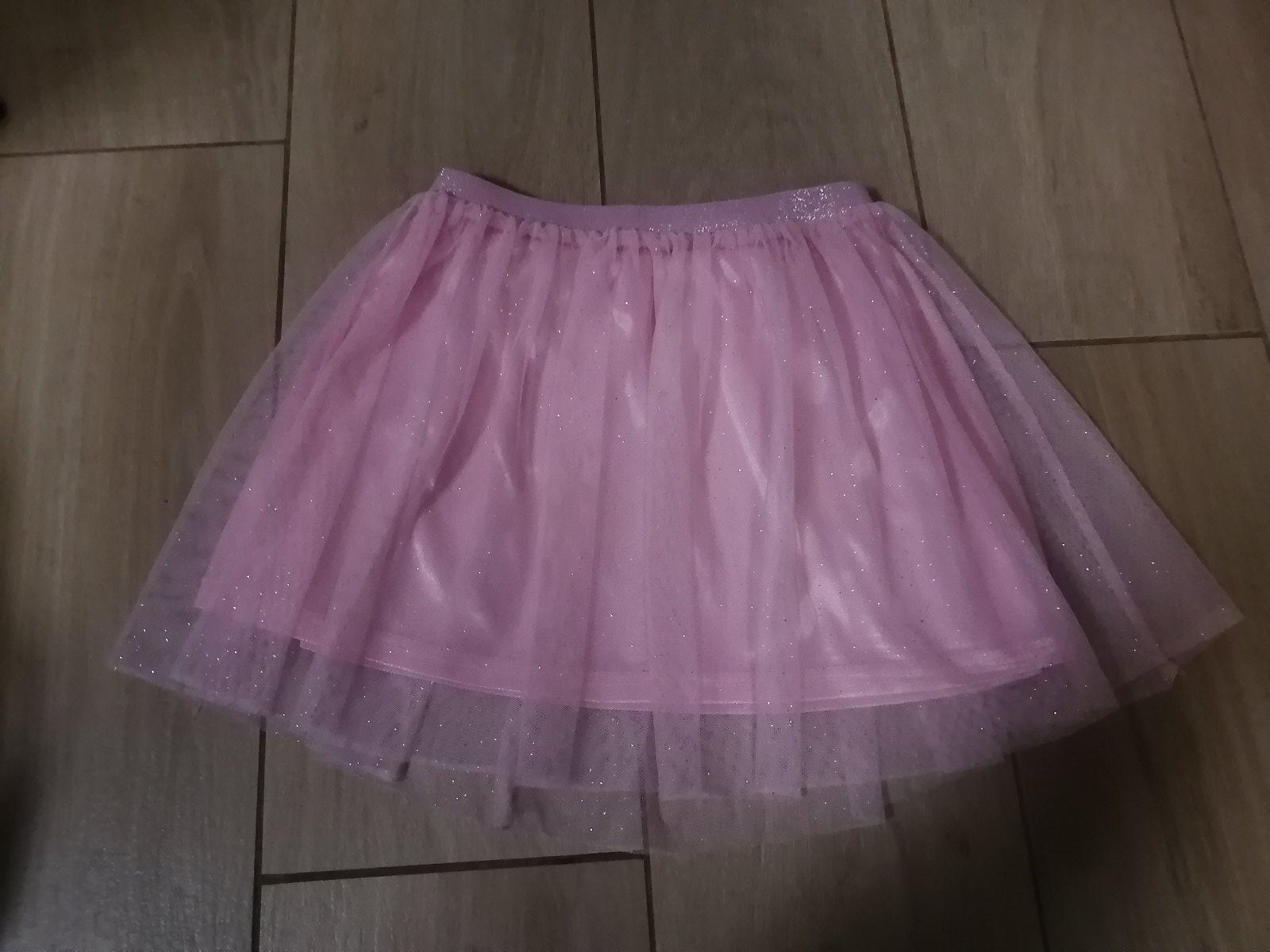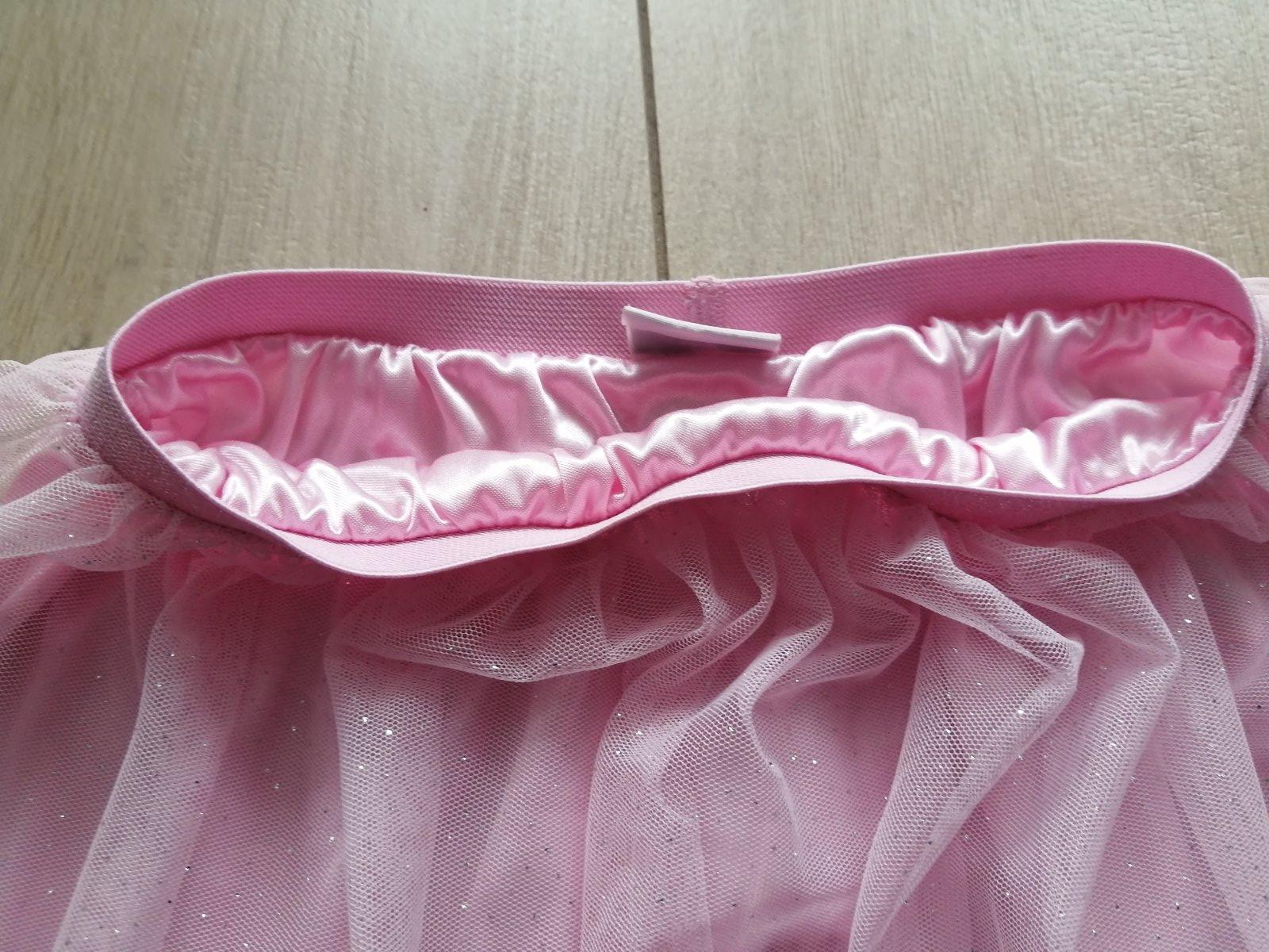 Krásna trblietavá suknička, všade má trblietky, aj pás je celý trblietavý, pekný stav. Pás elastický. Píšu 5-6 rokov. Rozmery sú nafotené. Farba je ružová, nie staro ružová ako na niektorých fotkách.