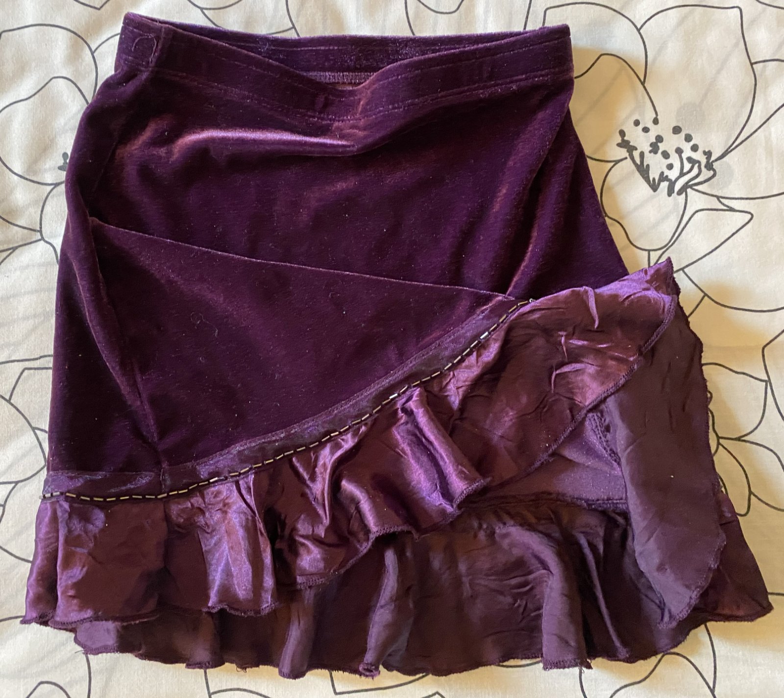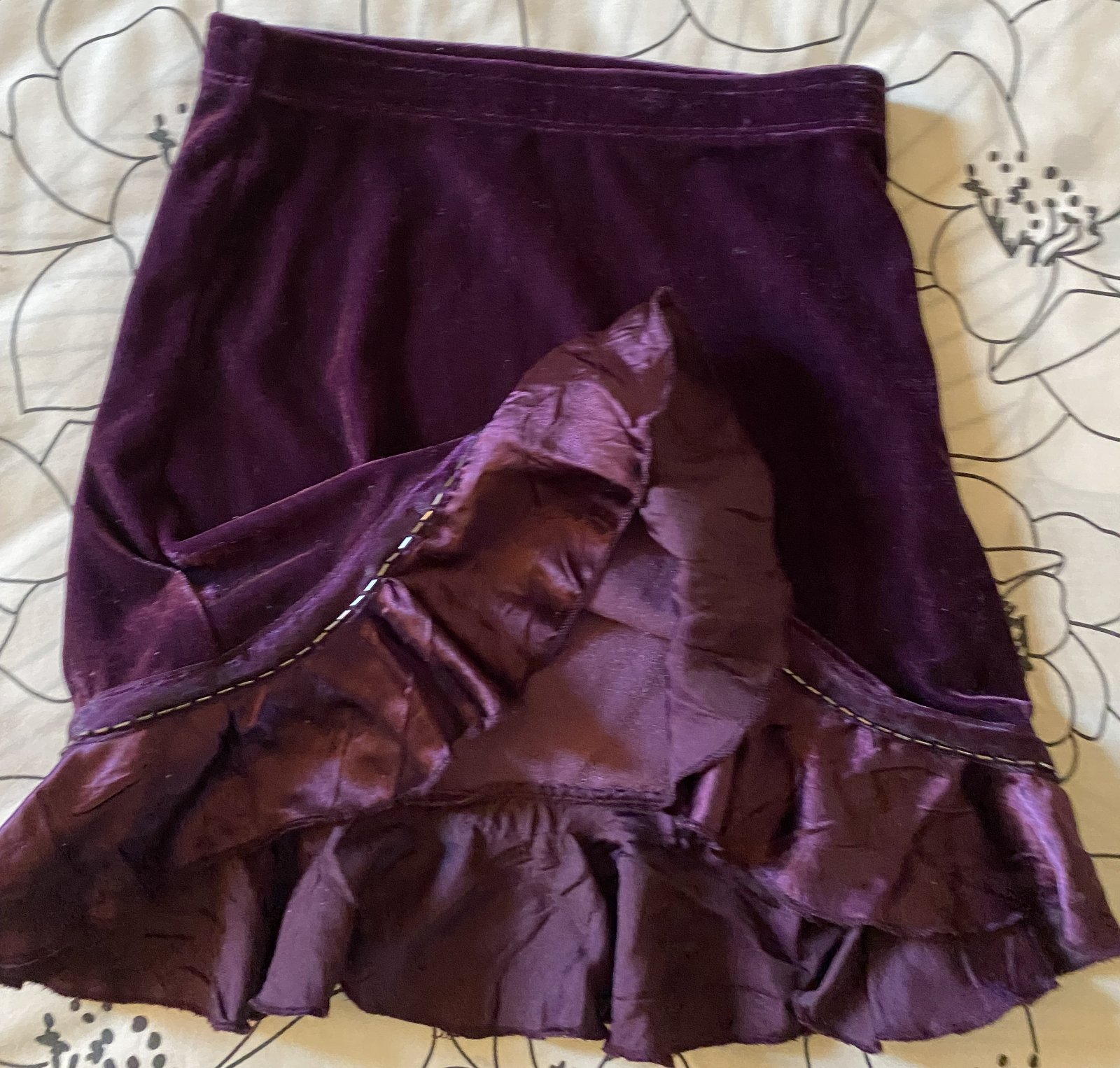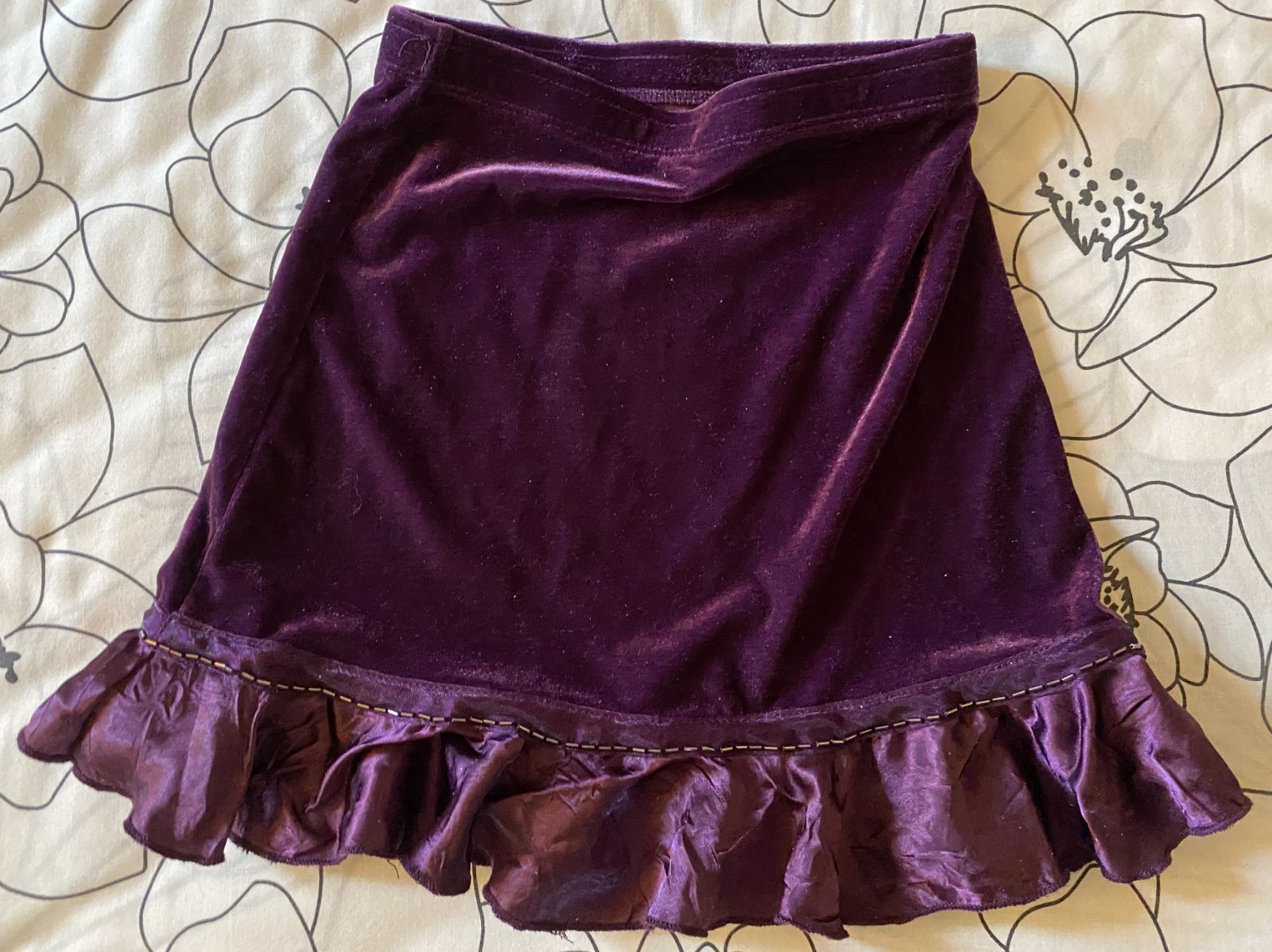 Sametová sukňa zn. Bhs písaná veľ. 3 roky - 98, dávam 98/104, materiál 95% polyester, 5% elastan - prispôsobí sa, farba bordovo-fialová, v páse guma, vrchná časť lesklý samet, spodná časť - volánik lesklá nepriesvitná látka + zdobenie kamienkami, vo veľmi dobrom stave. Miery: dĺžka vpredu: 32cm, vzadu trochu dlhšia: 34cm, pás v kľude: 25cmx2 - natiahne sa.