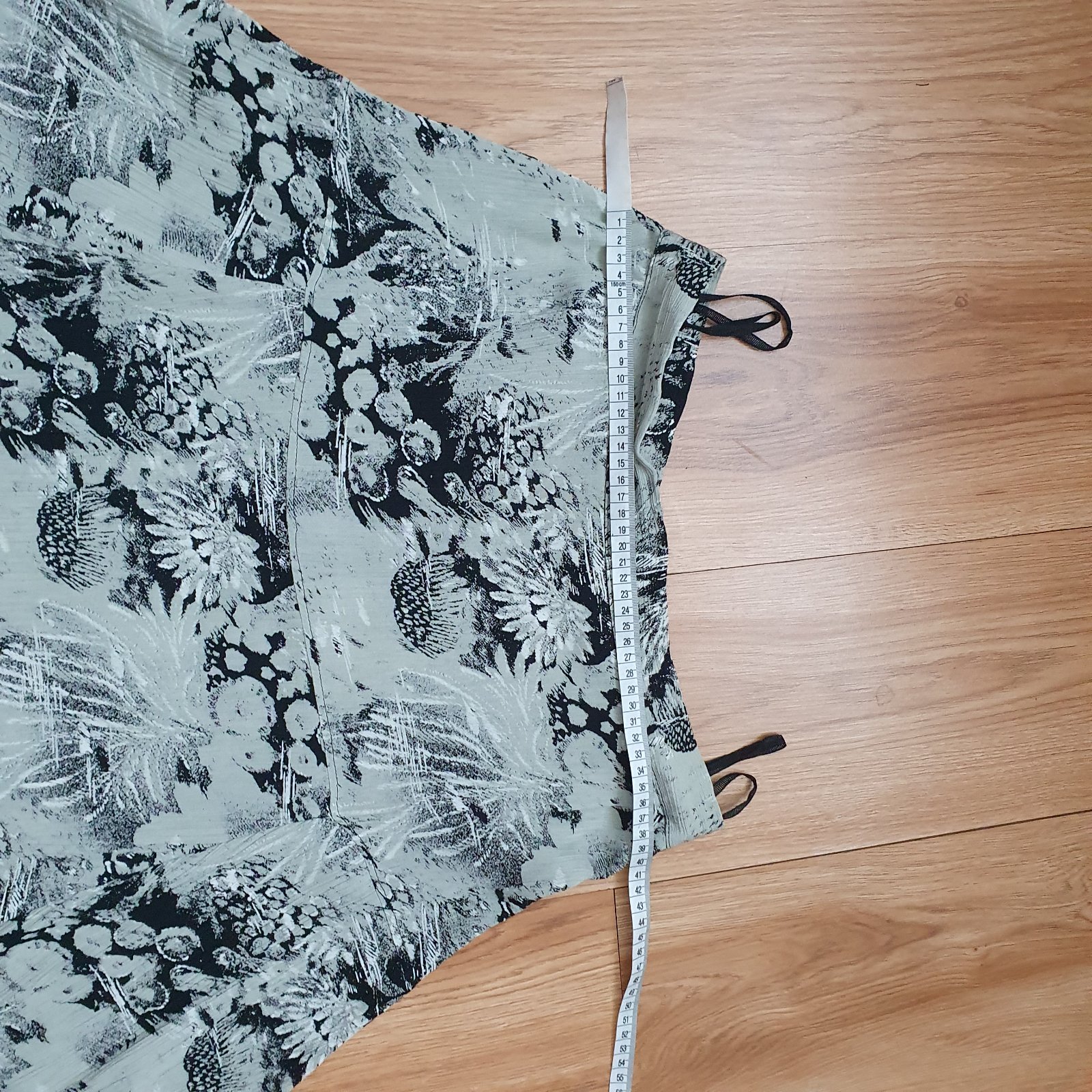 Dámska vzorovaná sukňa s dvoma bočnými vreckami, pás vzadu na gumu. Tenká. Elastická. Materiál:95%polyester 5%elastan. Veľkosť UNI (vhodná pre S,M,L). Krajina pôvodu: Taliansko. ROZMERY: Celková d...