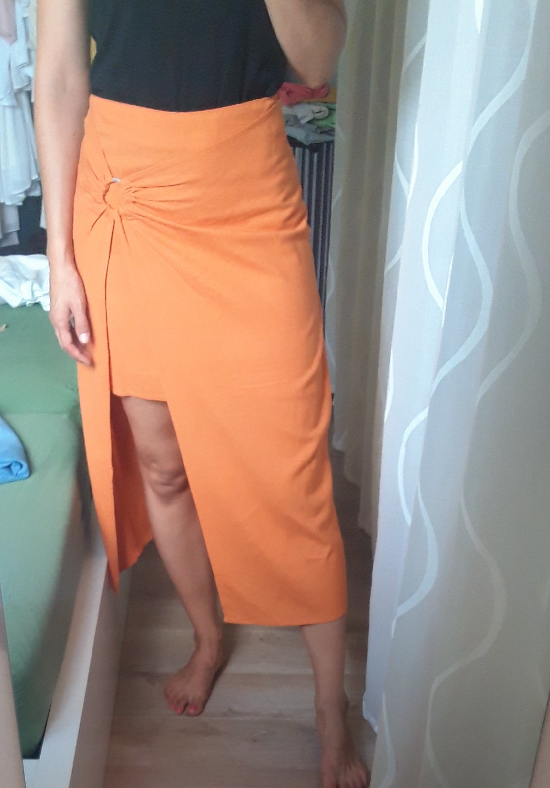 Dobrý noseny stav. Tehlová farba. Značka boohoo.Dlzka 75cm,pas30,povoli do 37cm.