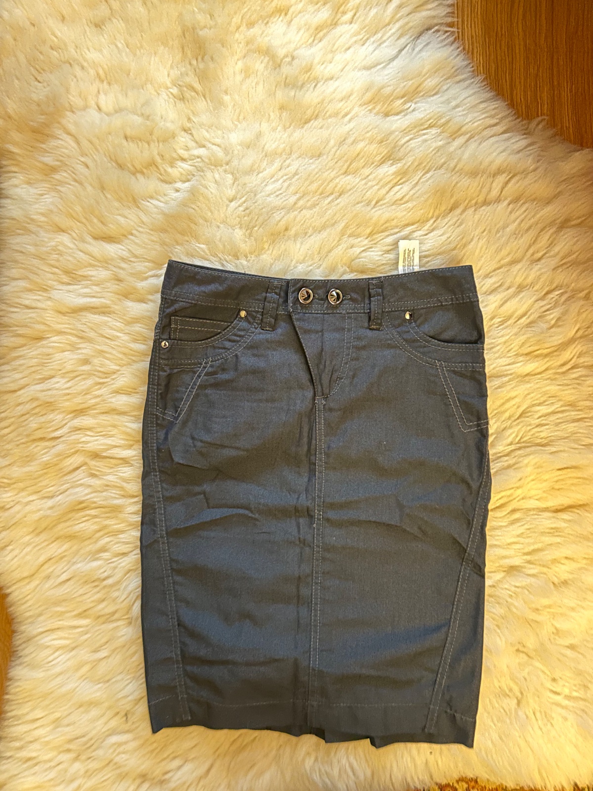 Krasna strieborna s jemným leskom bussiness sukna (=trochu elegantnejsia ako bežná do prace :) ). Veľkosť XS , dĺžka 56,5cm. Sedí perfektne, par x oblecena (babo bolo na ceste).