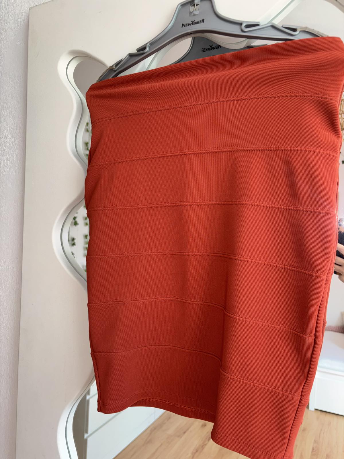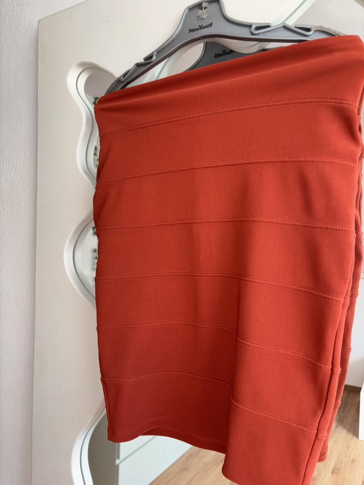 Nová bez visačky, silno formujuca, tehlová oranžová alebo teracota hnedá, veľkosť 38,sedí na 32/34/36,pás 32-37 x 2 cm, boky 42 cm, dĺžka 57 cm