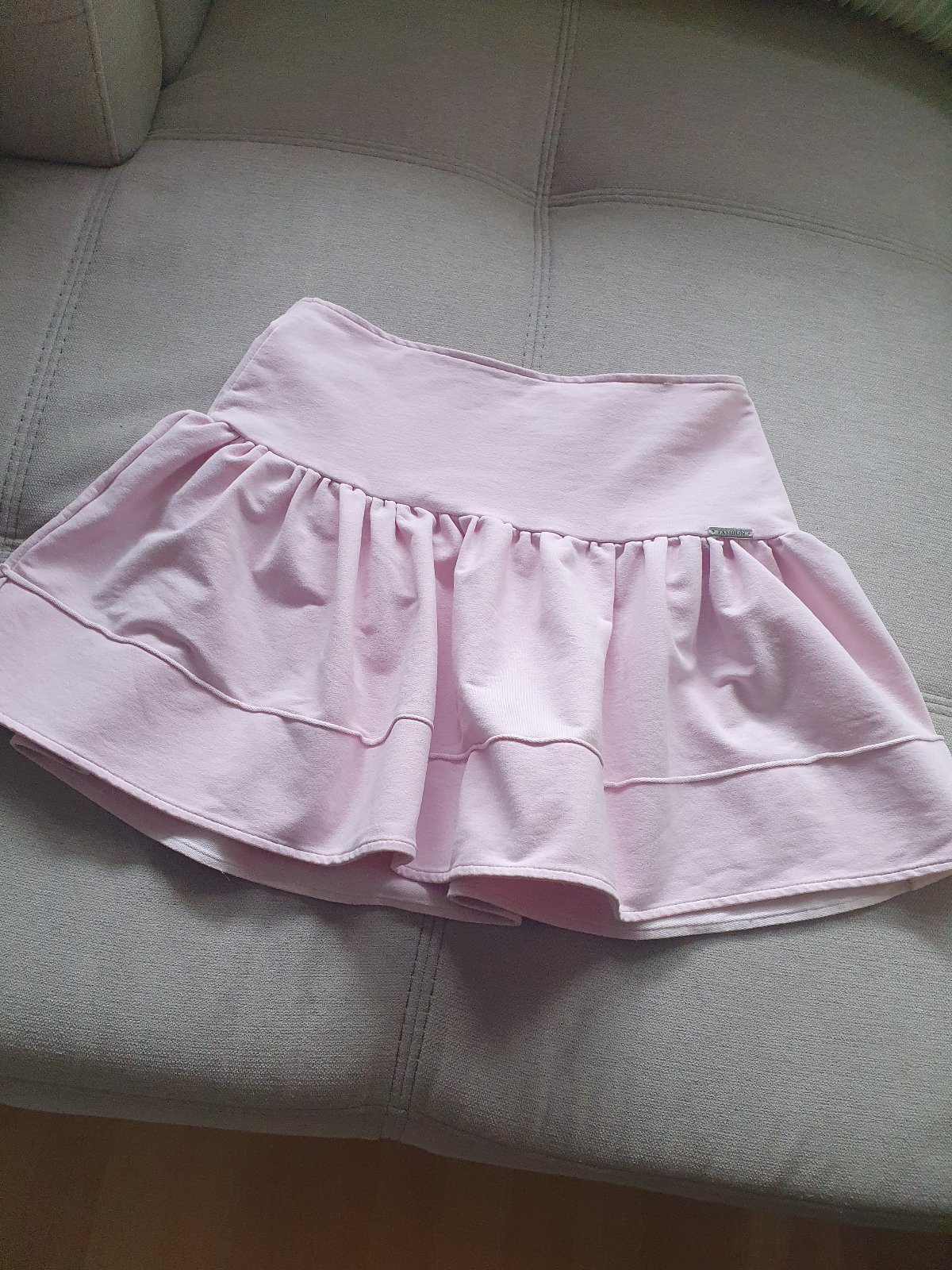 Roztomilá skladaná sukňa bledorúžovej farby, sú na nej bodky hnedej farby. Veľkosť S. Oblečená cca 3 krát, bez poškodenia. Značka Foxy.