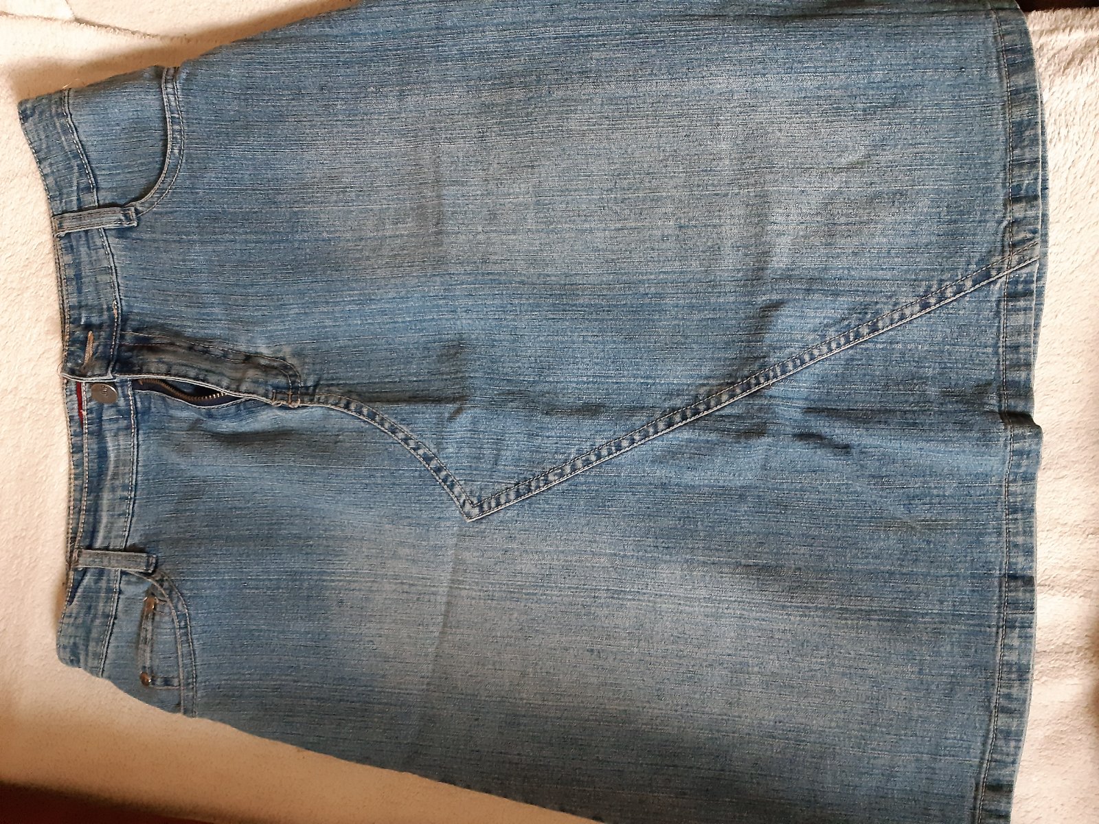 Elastická riflová sukňa. Iba opratá. V páse 50cm.