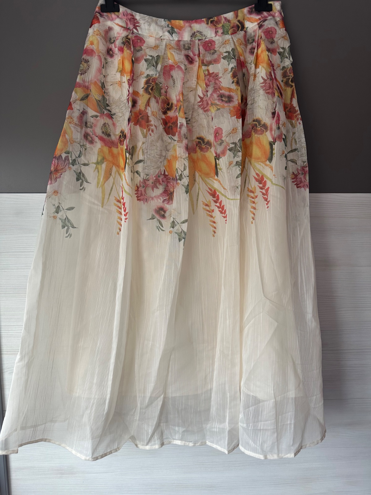 Ponúkam na predaj sukňu s kvietkami v midi dlzke, nová, veľ. 42.