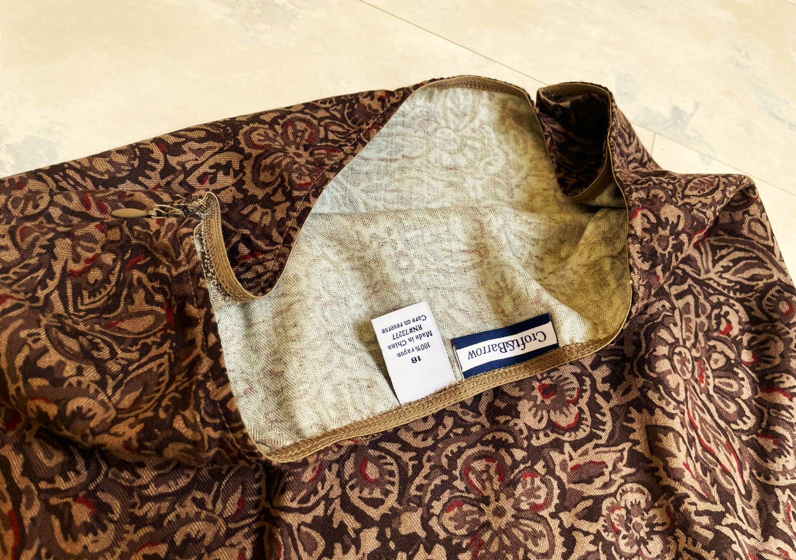 krásna min.nosená ľahká hnedá kvetovaná sukňu značky Croft & Barrow, ktorá má áčkový strih,nepodšitá,na boku zipsík,v páse gumička,veľmi kvalitná,100% viskóza,top stav a vzor,veľkosť 18,pekne padá a nerozširuje