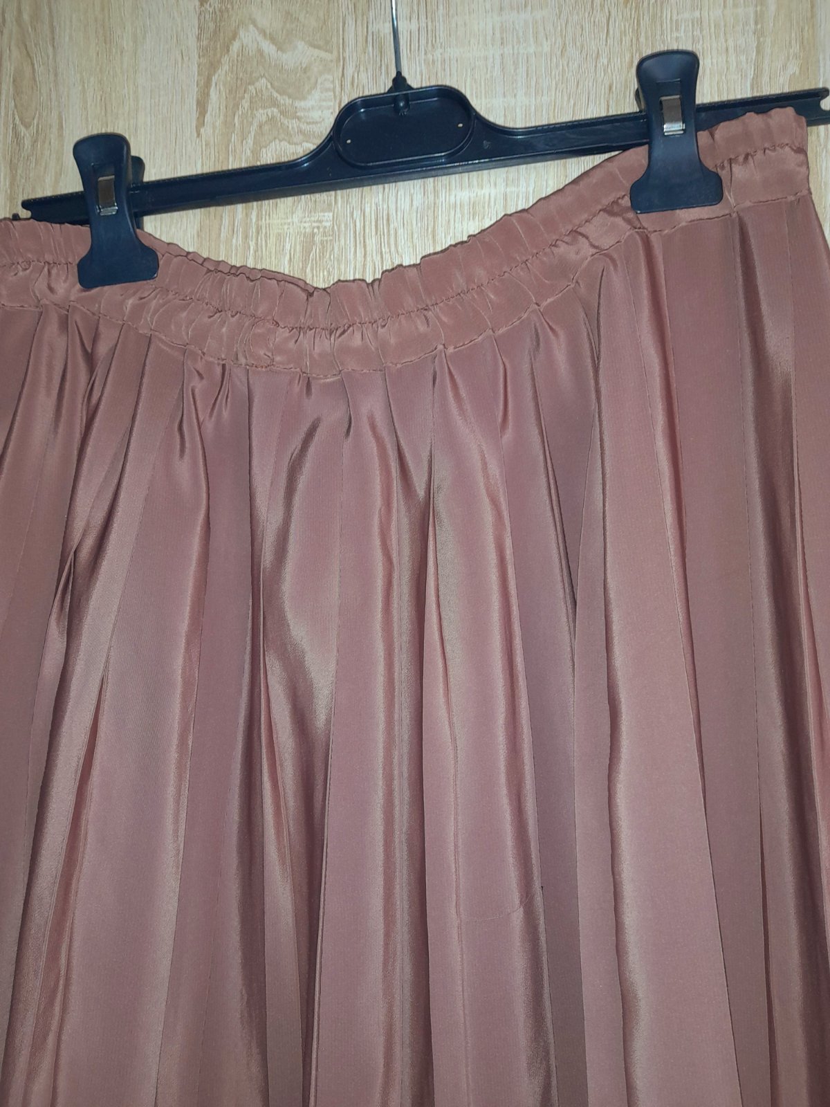 Predám peknú skladanu sukňu,nosena,v super stave.Velkost odhadom L.Farba je škoricova hnedá.