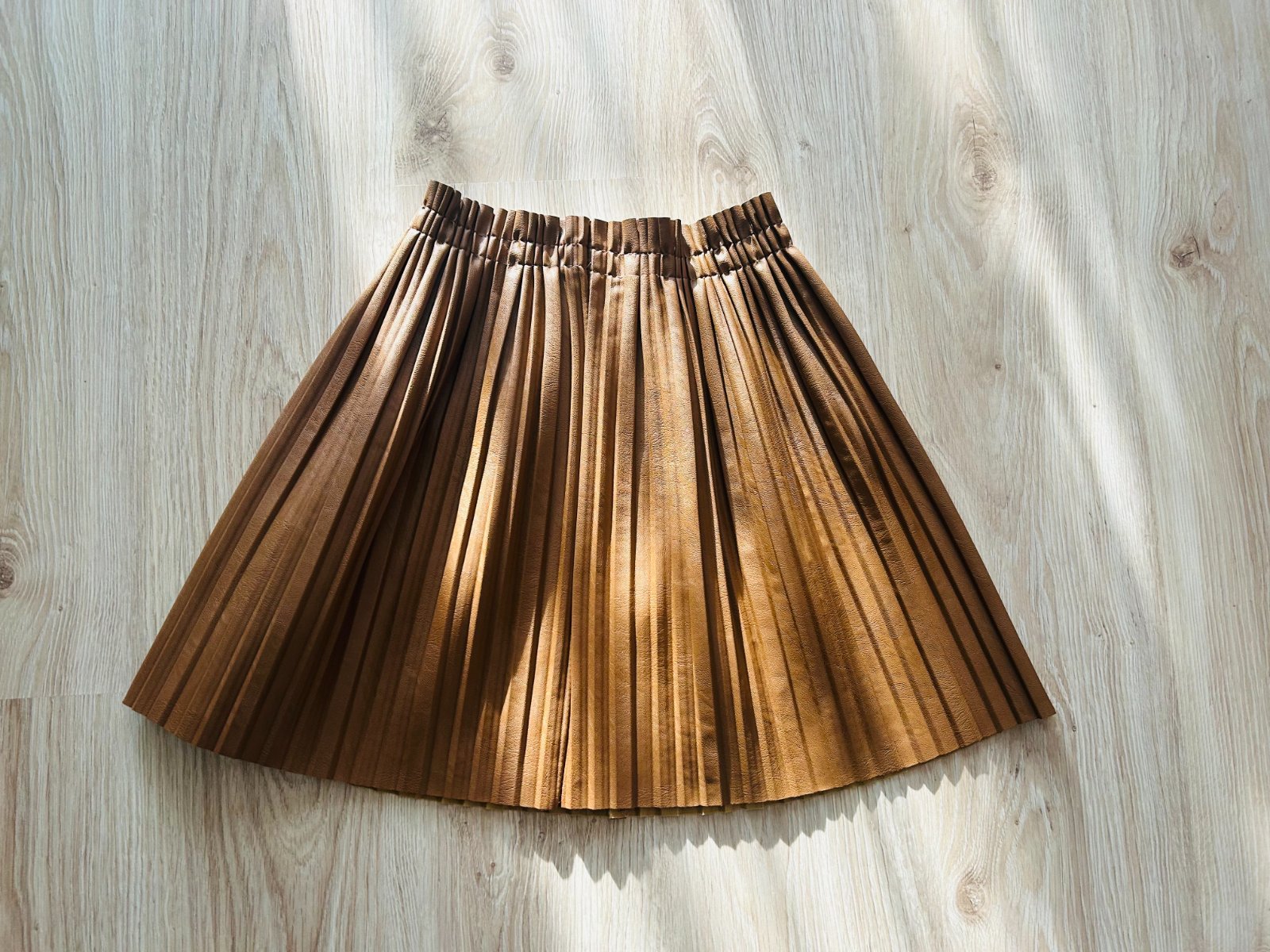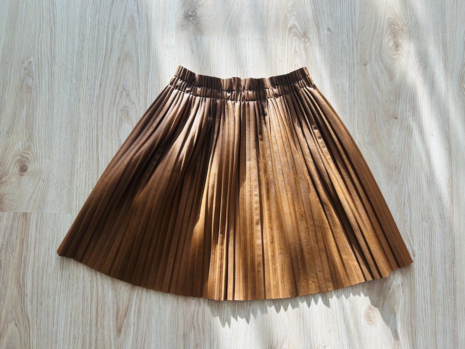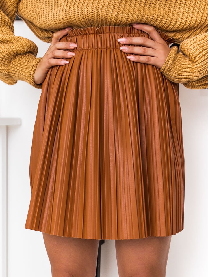 Predám túto krásnu koženkovú plisovanú sukňu značky GREENAPPLE v univerzálnej veľkosti, sedí na XS, S, M a L. V páse má gumu, takže sa prispôsobí. Oblečená bola len 1x. Má krásnu koňakovú farbu, ktorá sa dá pekne doladiť v rôznych outfitoch.