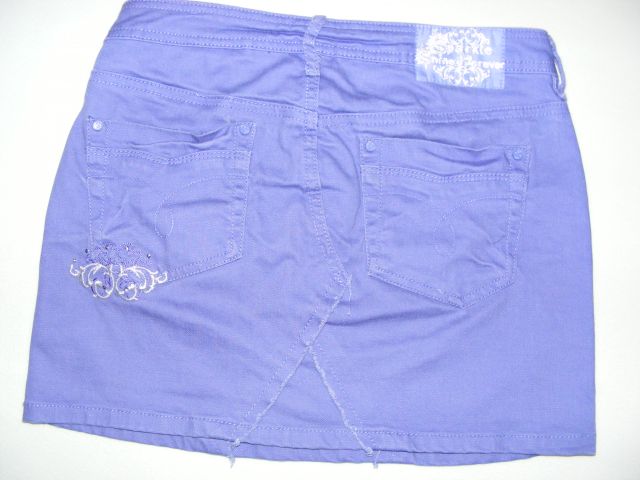 Fialová rifľová mini sukňa zn. H&M, zapínanie na zips a patent, funkčné predné aj zadné vrecká. Materiál 97% bavlna, 3% elastan.
