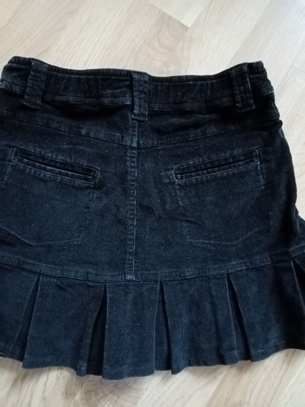 Hrubá, podšitá sukňa na chladné dní, čiernej farby bez poškodení. Super ku čižmičkam. Zapínanie na boku. Dĺžka 34cm a šírka v páse 28cm.
