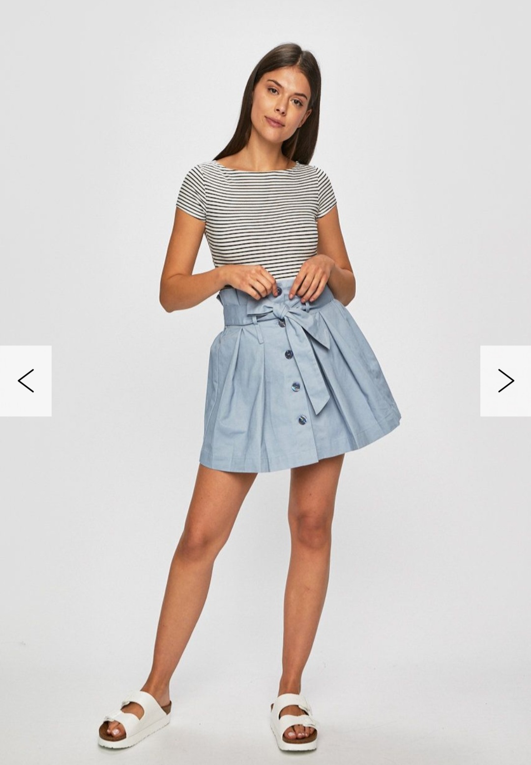Dámska bledomodrá riflová sukňa. Veľkosť je písaná 36. Materiál je písaný 98% bavlna a 2% elastan. Je v skvelom stave ako nová bez poškodenia atď. Rozmery: Dĺžka 40cm Šírka pásu 38cm (obvod 76cm...