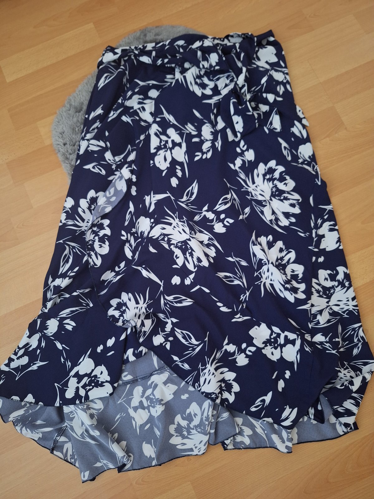 Sukňa je ozaj krásna, má v predu volán mierne robí rázporok a zaviažete si ju ako potrebujete a ešte vytvoríte v predu mašlu.