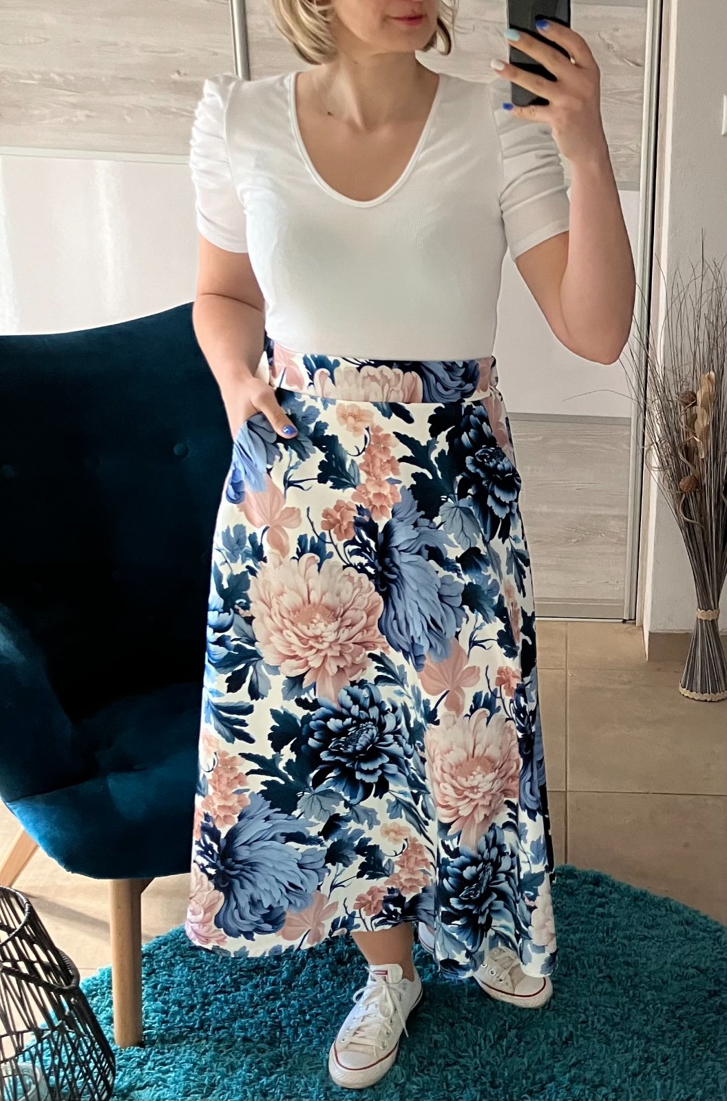 Kvetovaná sukňa s bočnými vreckami dámska