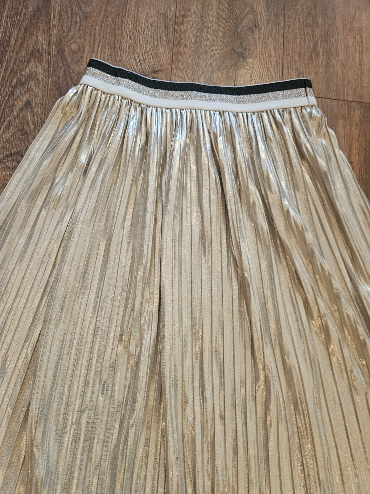 Ponúkam na predaj dievčenskú sukňu celú vyšitú zlatými filtrami. Má viac vrstiev, tylovú sukňu aj podšívku. Na fotke sú rozmery, dĺžka sukne, aj dĺžka gumy. Guma sa ešte dosť veľa natiahne. Veľkosť...
